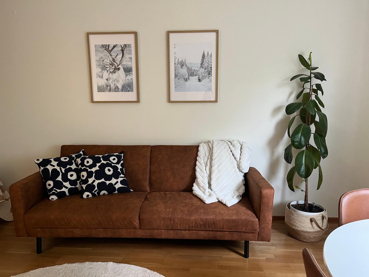 Notre maison familiale moderne, construite en 2018, est située au milieu d'une belle nature au bord de la rivière. Vous pouvez profiter d'un sauna, d'une salle de bain, d'une connexion Wi-Fi gratuite, d'un lave-linge, d'un lave-vaisselle, d'une cuisinière/four à induction, d'une terrasse complète, d'une cheminée, etc. Garage avec prise électrique pour le chauffage moteur. Notre maison est idéale pour les familles avec enfants. La cour spacieuse permet aux enfants de profiter des activités.