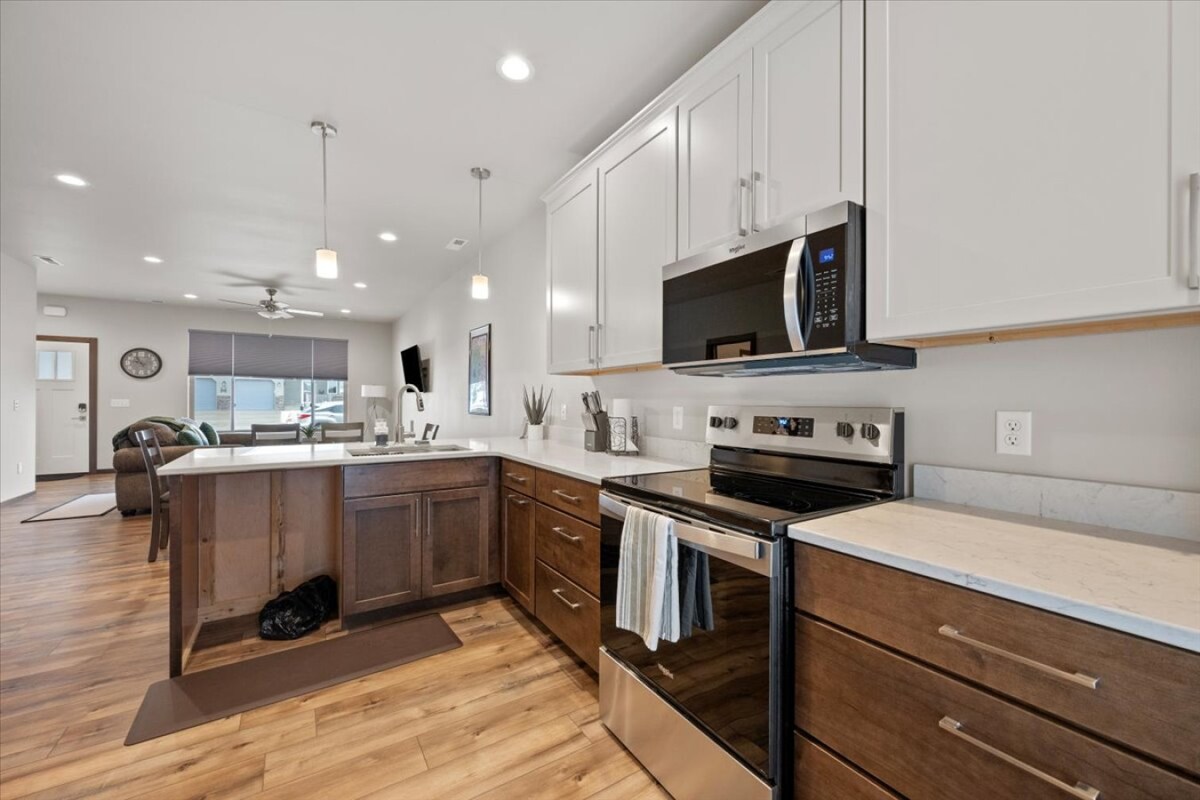 Rise 'N Shine vous offre une nouvelle maison de loft avec 3 chambres (3 lits queen size), 2,5BA, immense garage avec bar, beaucoup de stationnement et 3 portes vitrées coulissantes qui mènent au balcon de 40 pieds donnant sur Main Sturgis ! C'est un endroit super amusant et pratique qui en fait une expérience de vacances incroyable, que vous soyez en famille avec des enfants, des groupes d'amis ou des couples ! La proximité des attractions et des villes environnantes est impeccable avec le mont Rushmore à 45 min, Deadwood à 15 min, Spearfish Canyon à 15 min et Custer à 1 h 15 min