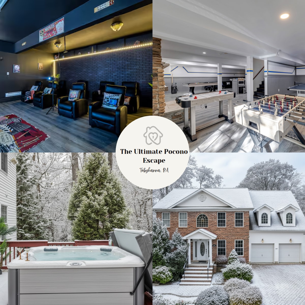 Créez des souvenirs éternels dans notre maison accueillante et moderne qui met en valeur une piscine, une salle de jeux, un sauna, une salle de cinéma avec son surround, un jacuzzi, un foyer en pierre avec des hamacs et des lumières à cordes à énergie solaire, un panier de basket et un gril extérieur. Détente et plaisir - Réservez pour des moments inoubliables ! À 13 min du casino Mount Airy À 9 minutes de Kalahari 12 min de Camelback Mountain À 10 minutes de Great Wolf Lodge À 15 min du parc d'État de Big Pocono N ° d'enregistrement du canton -020424 Âge minimum de loyer : 25