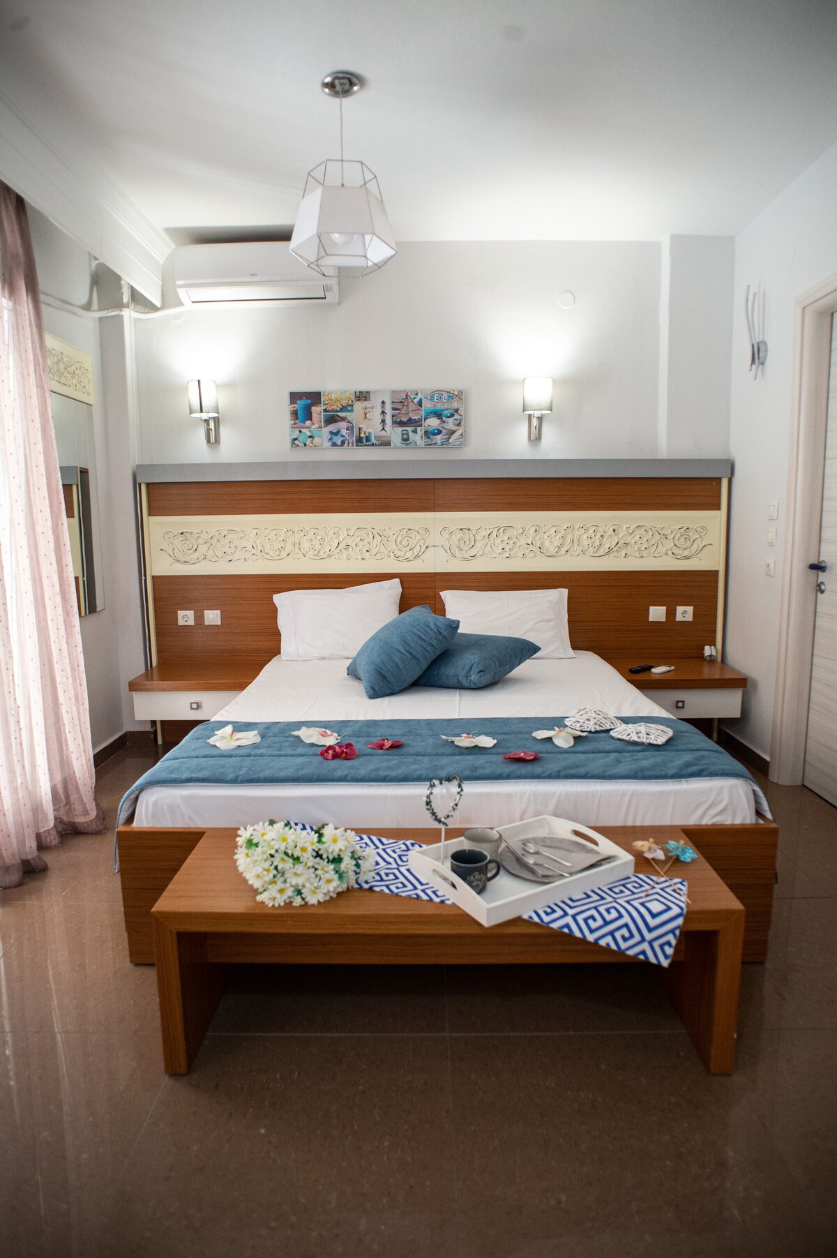 L'appartement est entièrement isolé. Télévision 40 pouces, connexion Wi-Fi jusqu'à 150 mbps, porte blindée, coffre-fort, extincteur, détecteur de monoxyde de carbone, détecteur de fumée, pharmacie, climatisation. Un lit bébé et une chaise haute sont également fournis. Il y a un supermarché à 70 mètres ainsi que des restaurants, un café, une pharmacie, une pizzeria, un salon de coiffure, une pâtisserie, un arrêt de taxi et une banque Eurobank. L'appartement est situé au premier étage.