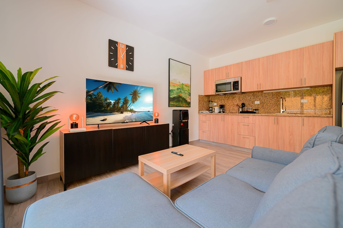 Appartement d'une chambre situé dans l'endroit le plus confortable, calme et privé de Sosua. Proche des meilleurs restaurants et plages. En plus d'une grande piscine où vous pourrez bronzer et vous détendre. L'appartement se compose d'un balcon spacieux, d'un patio ouvert, d'une sécurité 24h/24, d'un climatiseur, d'une cuisine, d'un lave-linge, d'une connexion Wi-Fi et d'un téléviseur intelligent.