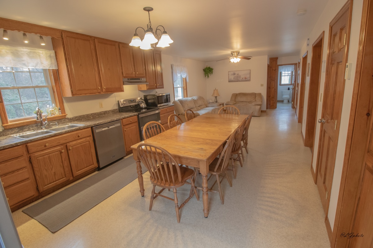 Appartement au sous-sol dans un cadre rural, niché entre deux montagnes. Nous sommes à mi-chemin entre Harrisburg et State College, et à seulement 10 miles de la Route 322. Outre la beauté de la rivière et des montagnes, le vignoble Juniata Valley et le Port Royal Speedway sont quelques-unes des attractions qui attirent les visiteurs dans la région.