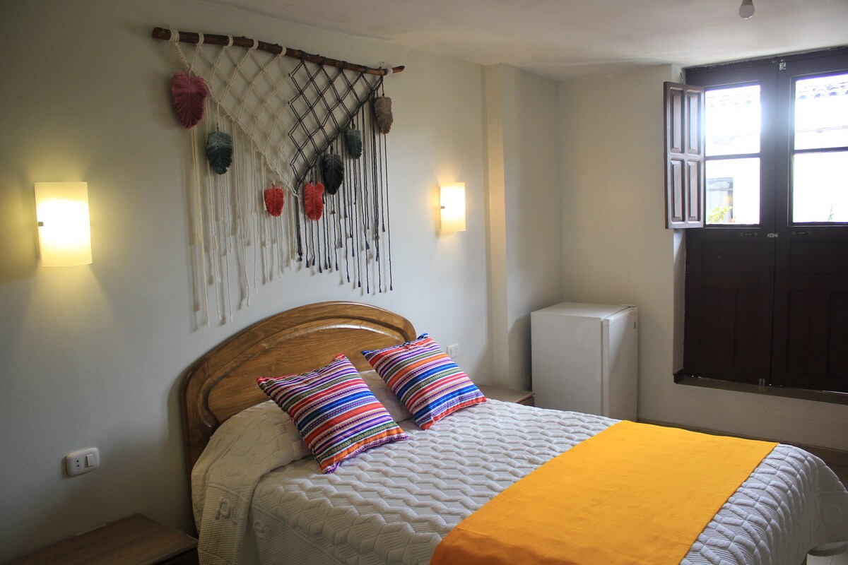 Nous sommes une auberge touristique située à Cajamarca. Nous sommes situés au centre de la ville très proche des restaurants, parcs, zones touristiques, agences de tourisme, églises, boîtes de nuit, bars, boutiques et marchés. Idéal pour venir seul, en couple, famille et amis, nous avons des forfaits touristiques afin que vous puissiez apprendre à connaître notre belle ville. Cajamarca est situé au nord du Pérou, c'est une région montagneuse pleine de nature et de paysages incroyables. Cette annonce fait la promotion de la chambre double.