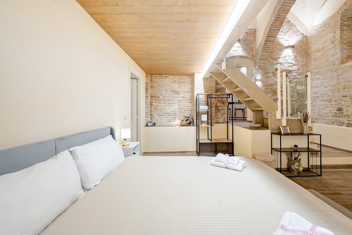 Le logement est situé dans le centre de Pérouse, un appartement mansardé à toit en pente, au troisième étage, avec entrée indépendante. Il se compose d’une chambre double avec salle de bains, d’un salon avec canapé-lit double, d’une cuisine super équipée et d’une connexion Wi-Fi haut débit. Entièrement rénové dans un style rustique chaleureux et accueillant, avec la réutilisation de matériaux d’origine pour les sols et le plancher.