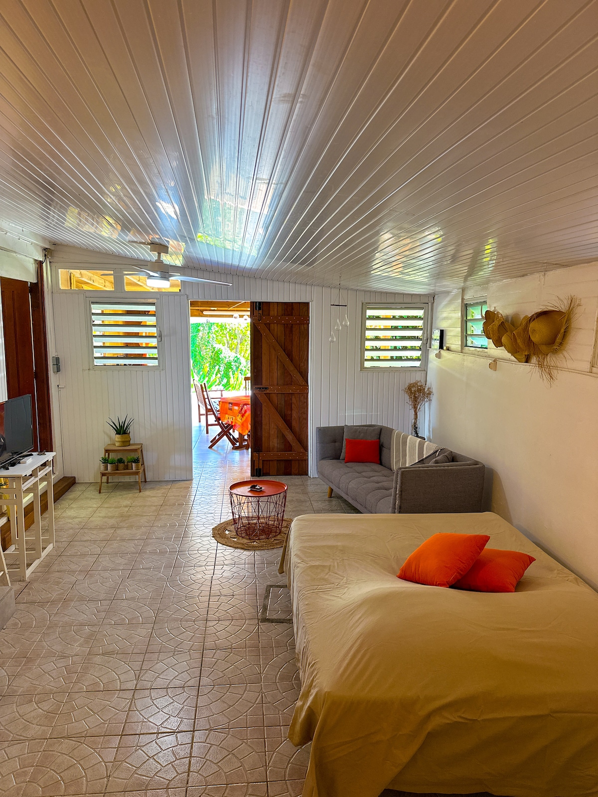 Logement en bas de villa avec accès indépendant situé dans une maison bioclimatique en lisière de forêt tropicale. Idéal pour les amoureux de la nature. Vous profiterez d'une chambre spacieuse, de sa salle de bain et de sa grande terrasse équipée d'une petite cuisine. Partez à la découverte des randonnées (canyon moustique) directement au départ de la maison ou reposez vous bercé par le bruit de la forêt et de la rivière. Egalement proche des commodités (5km commerces, 20km aéroport)