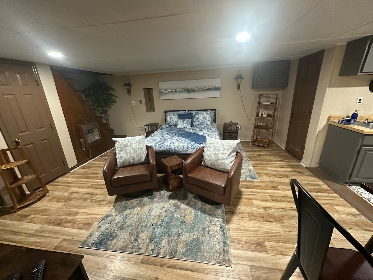 Ce charmant chalet est parfaitement niché entre Ft. Benning et le centre-ville de Columbus, ce qui le rend vraiment pratique pour tout ! Le chalet est à 10 minutes à pied ! Venez séjourner dans ce chalet confortable d'une chambre, qui a été récemment rénové complètement et avec goût. Il dispose d'un tout nouveau lit King Size (pas encore photographié), d'une cuisine, d'une télévision à écran plat 55 pouces et d'une salle de bain toute neuve ! Ce serait idéal pour les couples, les petites familles ou les voyageurs en solo !