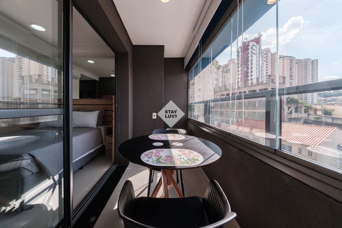Estúdio espaçoso com muito design, arquitetura e a melhor vista de São Paulo. Loft completo! Com cama queen, closet, ar condicionado silencioso, cozinha completa, home office, WI-FI, TV 55” e uma belíssima banheira de imersão, de onde pode apreciar o seu drink preferido e curtir uma vista apaixonante. São Paulo toda estará há poucos minutos de você. Acesse o metrô andando apenas 200m. Reserve com tranquilidade! Proporcionaremos uma excelente hospedagem e uma ótima experiência!