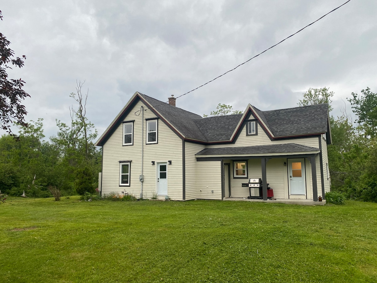 Profitez de votre séjour dans notre confortable ferme située sur plus de 3 acres. Spacieuse et avec un jardin couvert de beaux arbres ombragés bordant la propriété, vous menant à une belle vue sur l'endroit où la rivière rencontre l'océan. Entièrement rénové au printemps 2022, nous accueillons vos amis à quatre pattes et savons que vous apprécierez tout le confort de la maison pendant votre séjour. Buanderie sur place, Wi-Fi amélioré et beaucoup de commodités à moins de 10 minutes en voiture de NG ou de Pictou. Ne passez pas à côté, vous allez adorer le LDH ! NS#STR2425T0850