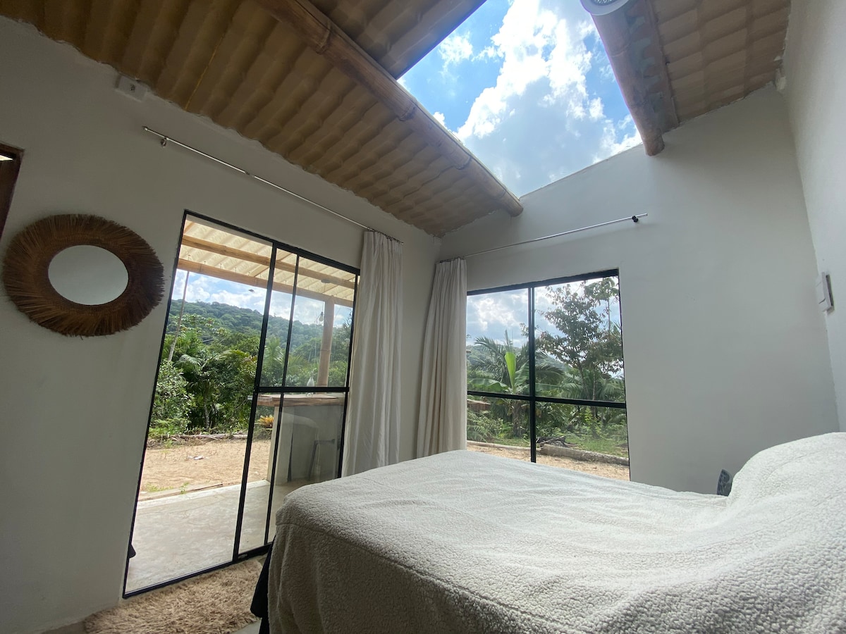 La Suite Adobe a été construite autour d'une pierre naturelle et de murs en terre compactée. Elle offre un confort inégalé, avec un lit construit sur une plate-forme en verre au-dessus de la pierre. Il y a un bain à remous avec vue panoramique sur la nature de la propriété. Elle dispose d'une cuisine équipée avec de nombreux ustensiles et appareils électroménagers. Dans le salon, une charmante cheminée écologique est fixée à la pierre. Espace extérieur, nous avons un foyer de jardin, avec des chaises en bois et des lumières pour profiter de la nature.