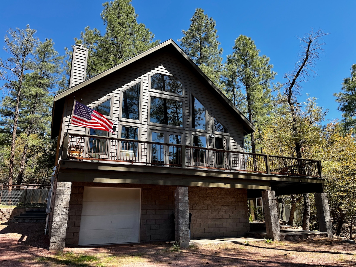 Évadez-vous de la vie urbaine dans ce chalet de montagne confortable de la forêt nationale de Tonto. Sa double terrasse enveloppante donnant sur le Mogollon Rim est idéale pour observer les levers de soleil, les couchers de soleil, la faune et l'observation des étoiles. Il y a 2 chambres avec lits Queen Size (l'une avec salle de bain attenante), et il y a un lit Murphy dans la bibliothèque. La bibliothèque dispose d'un grand espace de travail avec deux bureaux. Le chalet est le point de départ idéal pour se détendre, faire de la randonnée, travailler à distance, visiter Fossil Creek, Tonto Natural Bridge et bien plus encore !