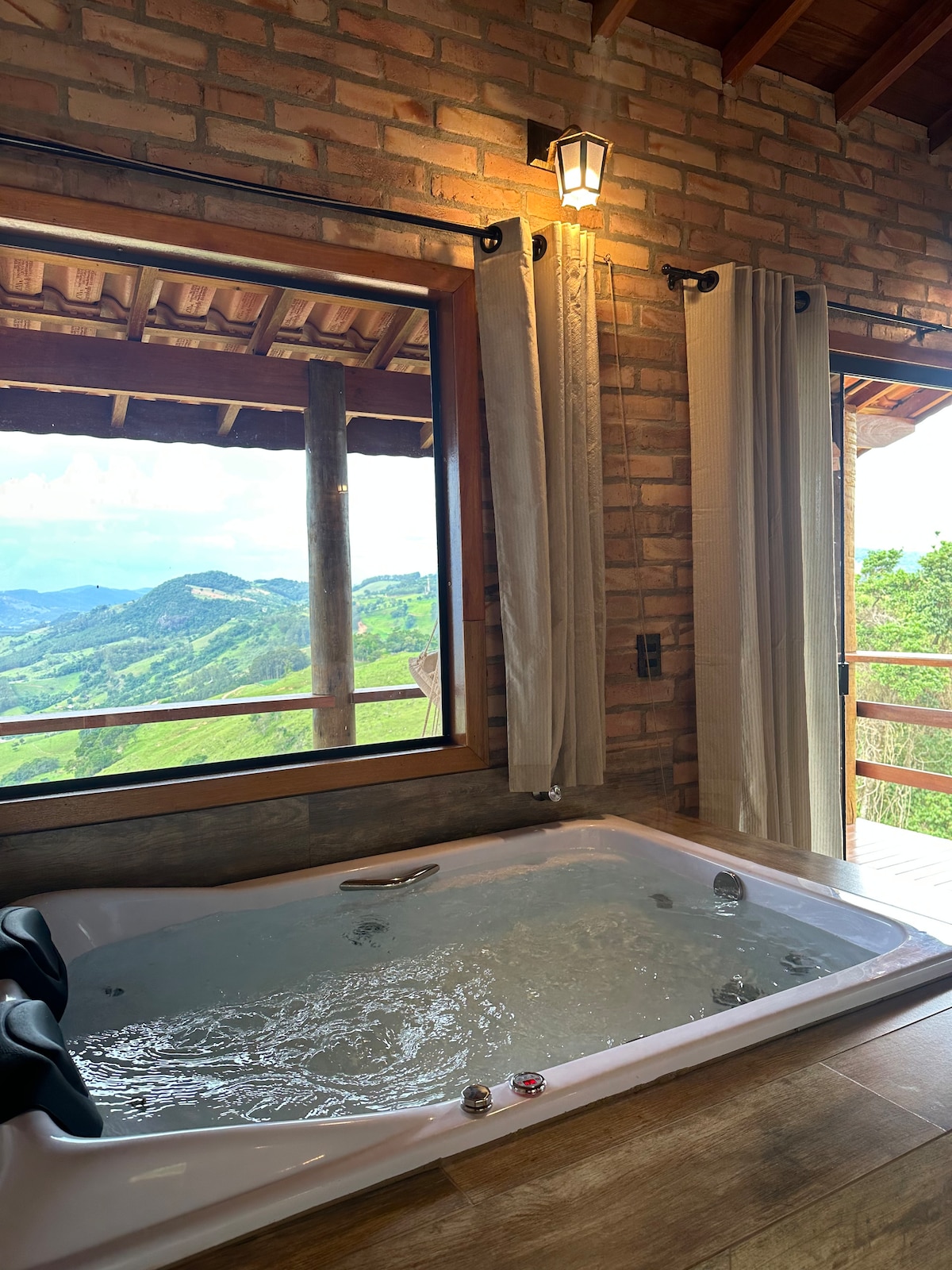 Chalé com jacuzzi e vista panorâmica às montanhas