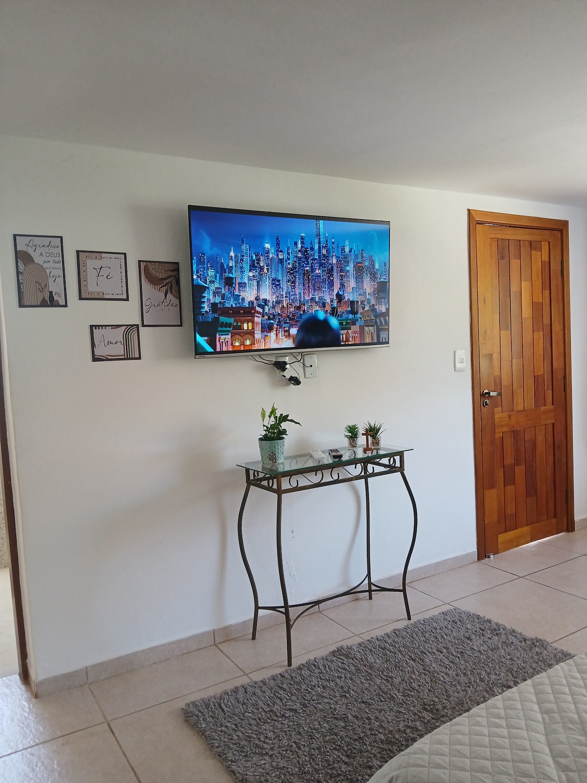 Relaxe com a familia nesta acomodação tranquila. 1quarto/sala conjugado banheiro ,cozinha,lavanderia, estacionamento espaçoso e um bonito jardim , bairro tranquilo a 650 mts praça principal da cidade. Ideal p quem quer conhecer a cidade, proximo de: Mercado ,farmácia ,docerias e praças. A casa é toda equipada : 1 cama box 1 sofá cama casal c/ colchão .Tv Smart .ar condicionado . microondas, cafeteira, liquidificador . wi-fi . . utensílios de cozinha . roupas de cama ,banho inclusos.
