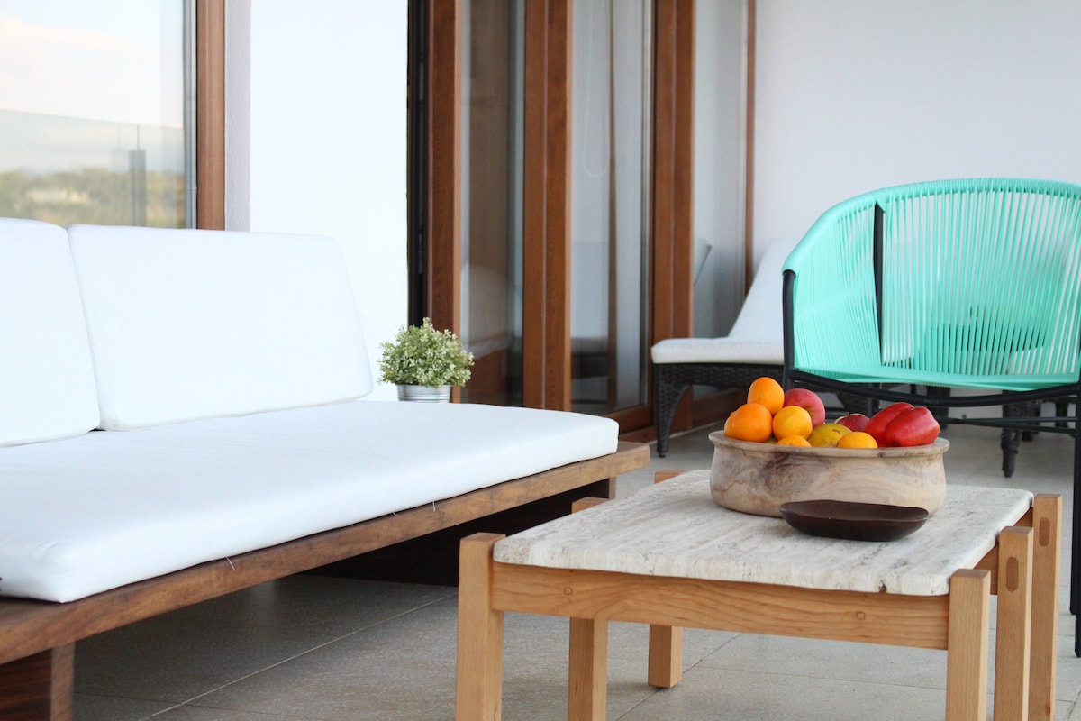 Welcome to your dream getaway in the heart of Mexico's vibrant town of La Cruz de Huanacaxtle (located equidistant from Punta Mita and Puerto Vallarta) ! Nestled on the third floor of the Amura building within the charming Alamar development, this stunning open-plan studio is designed to captivate your senses and provide you with an unforgettable vacation experience. Features kitchen, home office workspace, bed and sofa. Comfortable seats on balcony and art work.