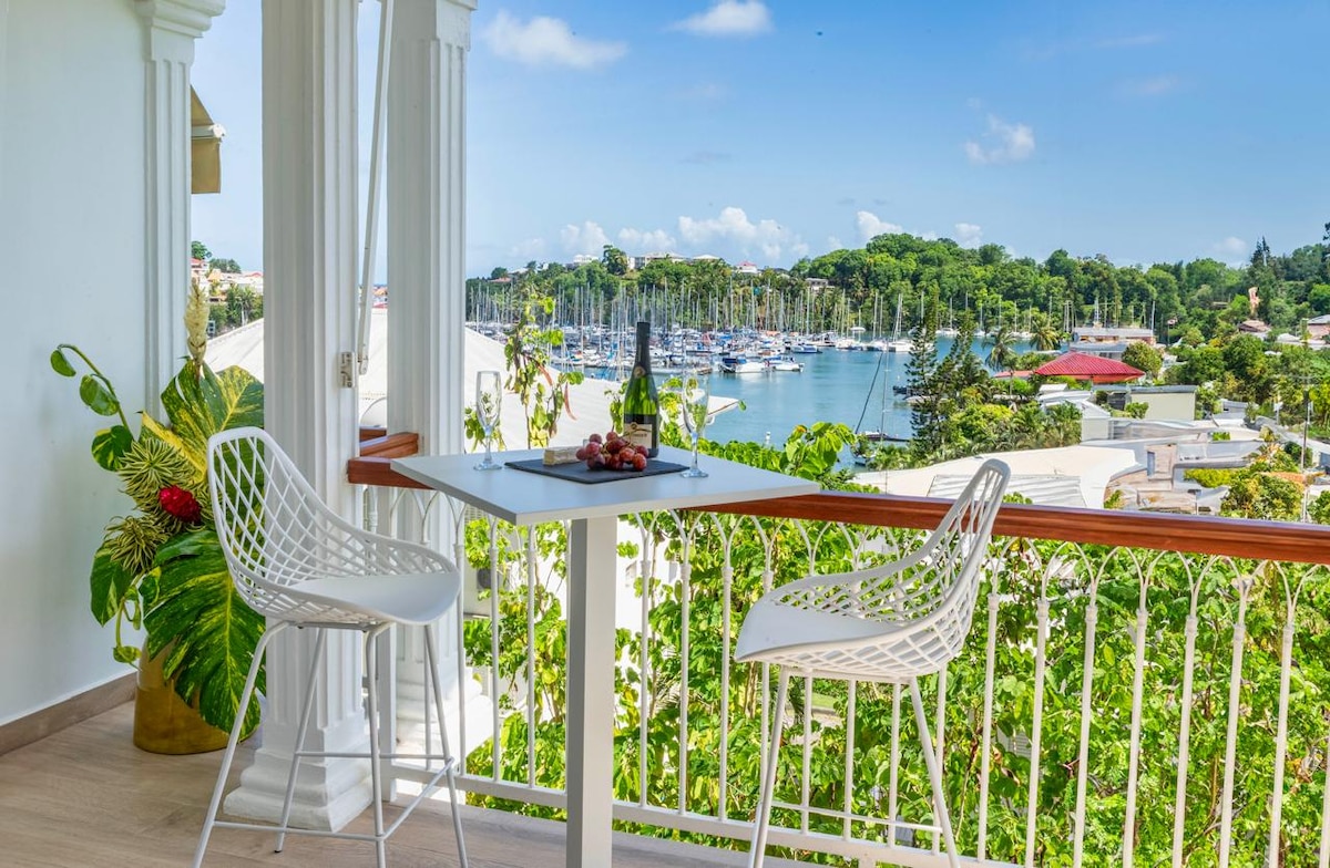 Vue mer panoramique sur la mer des Caraïbes, studio "Coup de cœur Airbnb" – idéal en solo ou à deux ! À seulement 4 minutes à pied de la plage privée de l’Anse des Rochers, ce studio climatisé de 25 m² avec terrasse extérieure vous offre une vue mer à 180°, idéale pour se détendre, télétravailler ou partager un moment à deux.