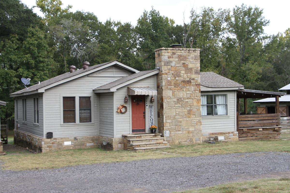 Cette cabane de style nostalgique intemporel vous fera remonter le temps, assis sur 8 acres rien que pour vous. N'hésitez pas à vous promener jusqu'au pont et à profiter du cadre du parc et du foyer. À seulement 1,5 miles de Petit Jean St. Park. Plancher ouvert, 2 chambres et 1 salle de bain en bas. Le loft à l'étage dispose de 2 lits simples. Cheminée à bois. Grande cuisine, tabourets de bar, nouvelle télévision avec Netflix, cuisine entièrement approvisionnée, cafetière, café et crème fournis. Porche arrière couvert avec vue.