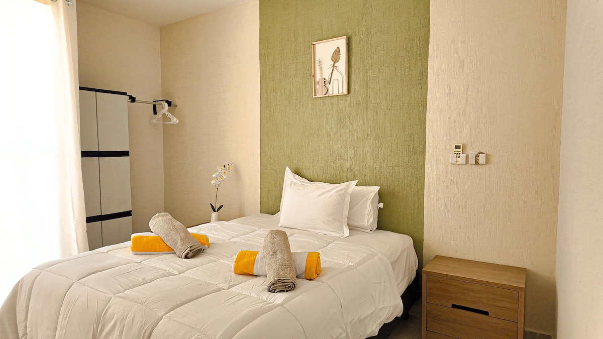 Appartement meublé moderne à Playa del Carmen. Nous disposons d'une cuisine complète, de lits pouvant accueillir jusqu'à 6 personnes, de placards dans chaque chambre, d'un espace de travail, d'un canapé-lit dans le séjour, d'une salle de bain rénovée et d'une piscine. Les deux chambres disposent de la climatisation, ainsi que d'un service Internet. Estamoa à 15 minutes de la plage et de la 5ème avenue. Notre espace privé dispose d'une sécurité 24 heures sur 24. Nous avons une place de parking pour vous et nous travaillons pour vous offrir confort et sécurité.