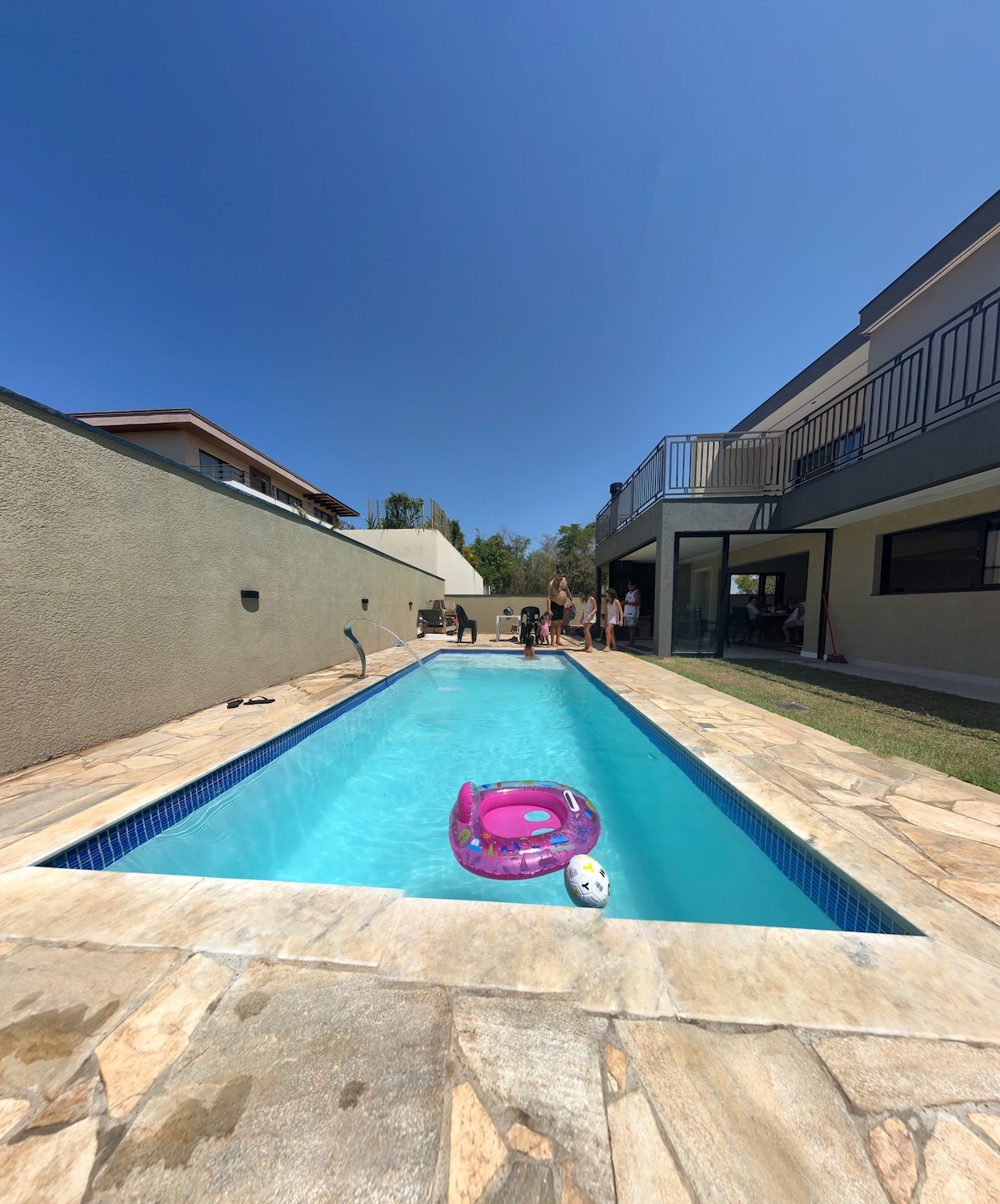 Départ tardif (20h) le dimanche GRATUIT. Maison moderne et confortable avec une ambiance familiale et la nature à côté. Ici, le barbecue est garanti et les loisirs sont toute l'année dans la piscine privée, avec traitement de l'ozone et chauffage solaire Derrière la maison une petite forêt et à moins de 200 mètres 3 lacs pour les loisirs, avec pêche sportive et aire de jeux. Condominium 24h/24 à São Paulo. Maison clôturée et sûre pour les jeunes enfants et les animaux de compagnie. Arrivée : 14h Départ : 12h