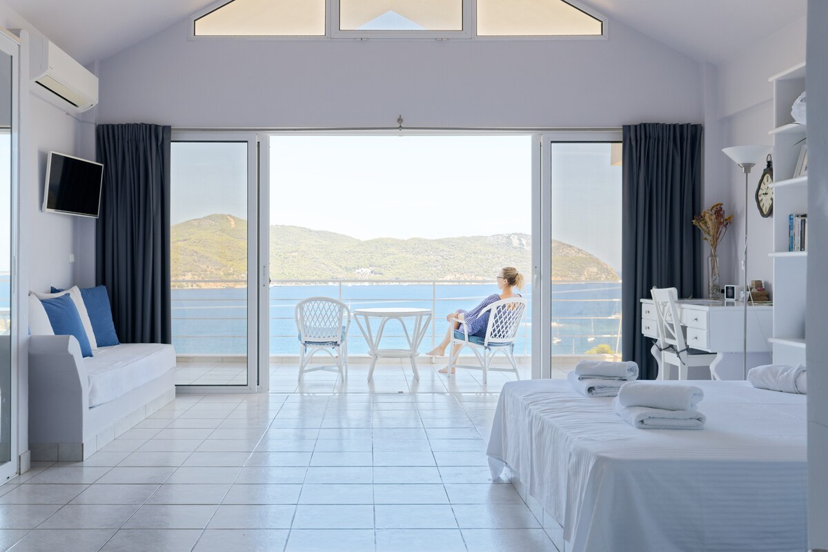 Studio avec vue et piscine, transport gratuit depuis le port