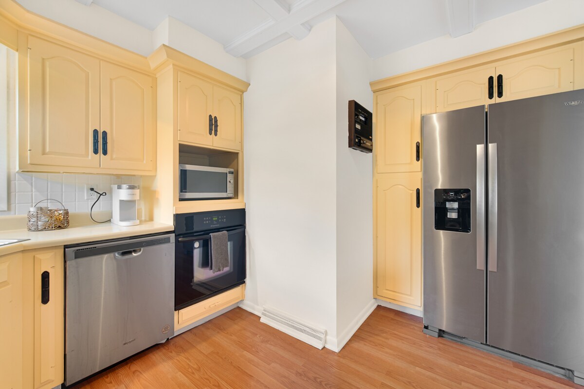 Maison de deux chambres entièrement rénovée et décorée avec goût pour des séjours courte ou longue durée. Espace de bureau pour les voyageurs d'affaires. Animaux acceptés avec clôture sécurisée dans la cour arrière. À distance de marche du centre-ville avec des boutiques pittoresques, un bar à vin, un bar à bière artisanale, des restaurants et des pistes cyclables. Que vous soyez en ville pour le travail, pour rendre visite à votre famille ou simplement pour une escapade d'un week-end, cette maison et son emplacement sont parfaits pour des séjours de courte ou longue durée.