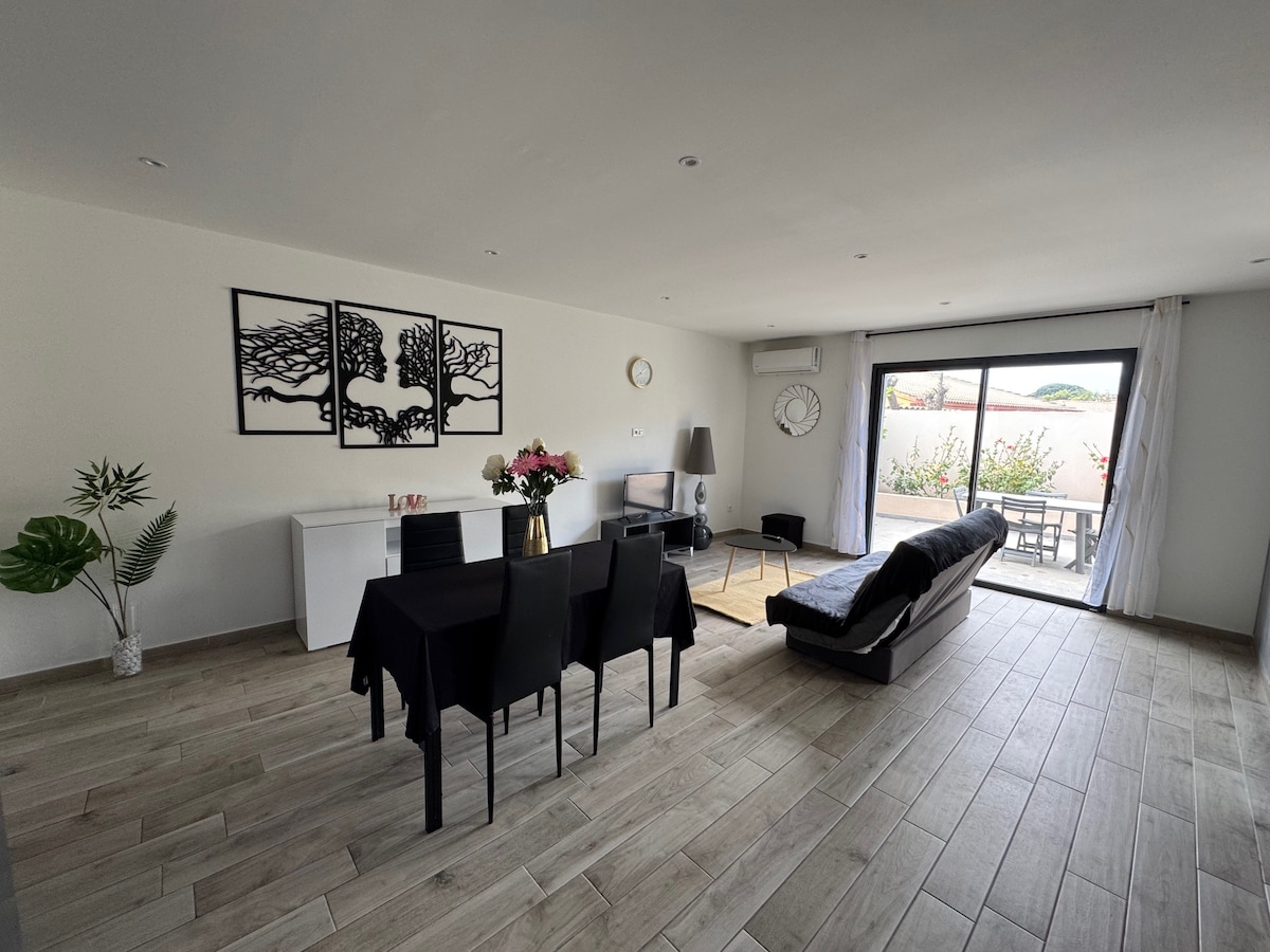 Une maison avec 3 chambres à 5 min des plages