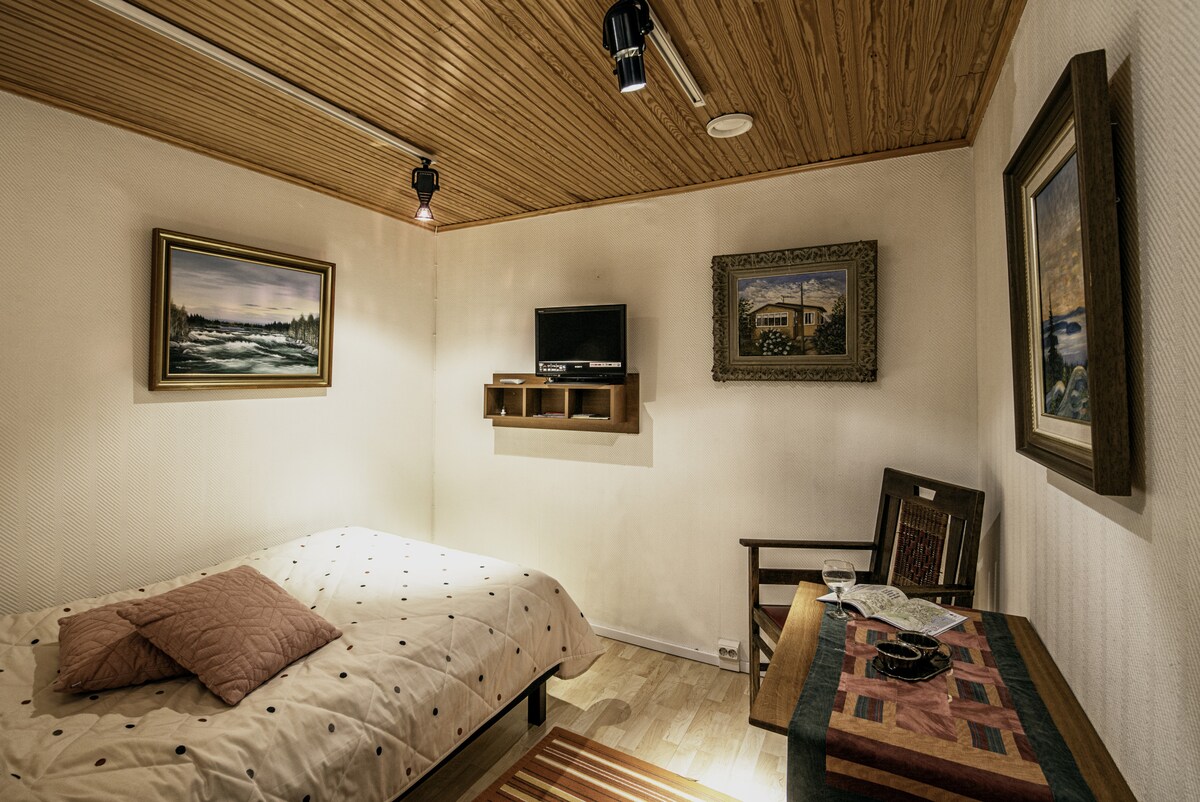 Une petite maison unifamiliale confortable en bordure d'un champ attend un voyageur qui aime son propre espace et sa tranquillité. La maison dispose de sa propre cour et dans un bâtiment séparé, il y a également un sauna et une petite pièce Faites comme à la maison - c'est à vous pendant un moment