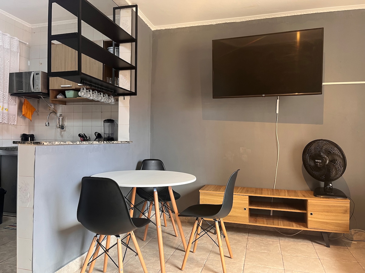 Informations sur l'appartement : - Peut accueillir jusqu'à 5 personnes maximum. - Climatisation et balcon dans les chambres. - Cuisine complète. - Une place de stationnement dans l'immeuble. - Serrure électronique. - Toutes les fenêtres sont blindées. - Piscine et salle de jeux du condominium. - Nous fournissons la literie et la baignade. - Animaux são aceitos. - TV 4k e Wi-Fi de 220 Mbit/s. - À 100 m de la plage de Vila Tupi. - À un pâté de maisons d'un marché, à deux pâtés de maisons d'une boulangerie, et plusieurs restaurants à quelques pâtés de maison.
