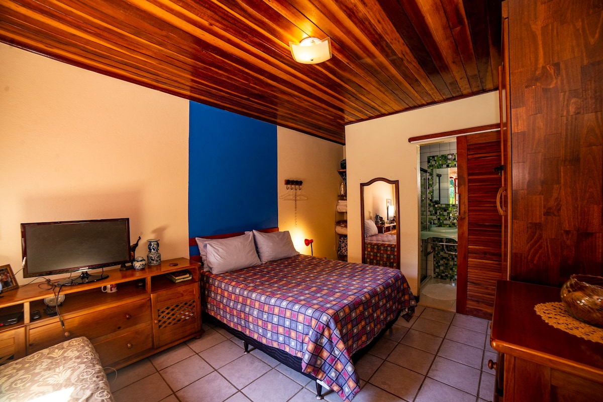 La maison orange de Mamanguá est cet endroit spécial que nous n'oublions jamais. Une maison confortable et confortable avec une vue imprenable au bord de l'océan immergée dans le seul fjord tropical du monde ! Ici, le temps passe plus lentement et les choses prennent un nouveau sens. IMPORTANT : accès uniquement par bateau, il n'y a pas de marché ni de signal mobile et des pannes de courant/wifi peuvent se produire. Nous fournissons des kayaks pour explorer ce paradis ! La cuisine est équipée, le salon est grand et intégré à une terrasse extérieure. Les chambres sont petites et confortables.