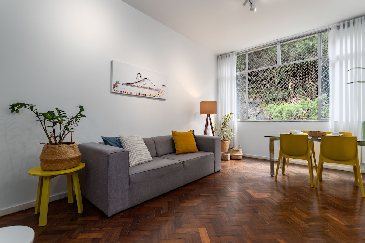 Entièrement rénové, l'appartement est au rez-de-chaussée d'un immeuble résidentiel unifamilial. Il est indépendant du reste du bâtiment et dispose d'une entrée à usage exclusif. La rénovation et la décoration ont été conçues par un architecte et un designer d'intérieur, pour le confort et la commodité des clients. Le quartier est connu comme un quartier résidentiel sûr, où il est possible de séjourner dans un environnement calme et en même temps proche, à 2 km de la station de téléphérique de Pão de Açucar et à 4 km de la plage de Copacabana.