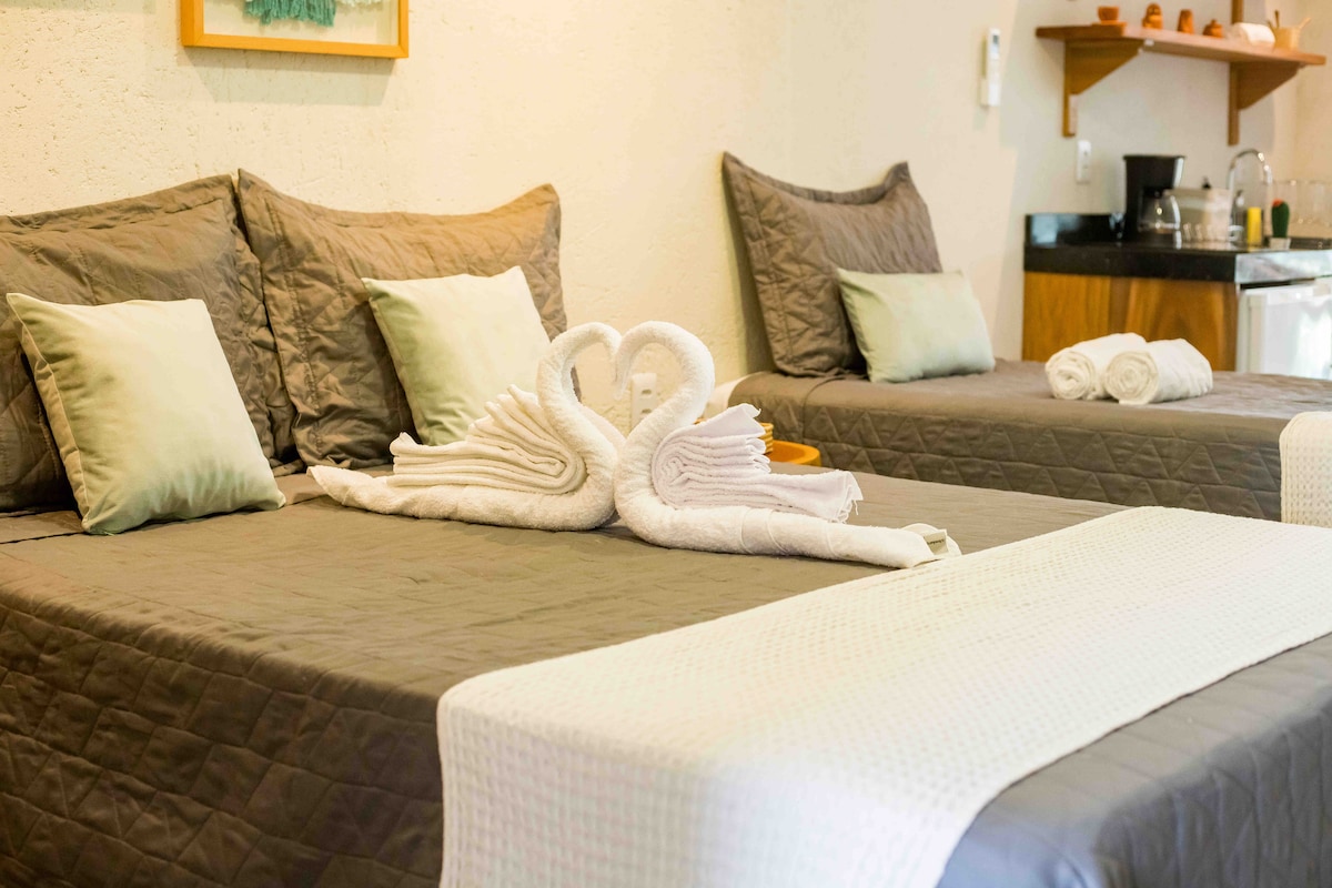Nous sommes à Patacho Beach ! Notre studio est un espace moderne, confortable et entièrement équipé pour votre séjour. Situé dans la copropriété Villas Manatee resort, vous aurez une vue sur la piscine et un accès à toutes les infrastructures : piscines, jacuzzis, sauna, centre de remise en forme, aire de jeux, parking et sécurité 24h/24. Nous sommes proches des marchés, des restaurants et de la beauté naturelle de la Rota dos Milagres, y compris les célèbres piscines naturelles de Patacho, Milagres, Japaratinga et Maragogi !