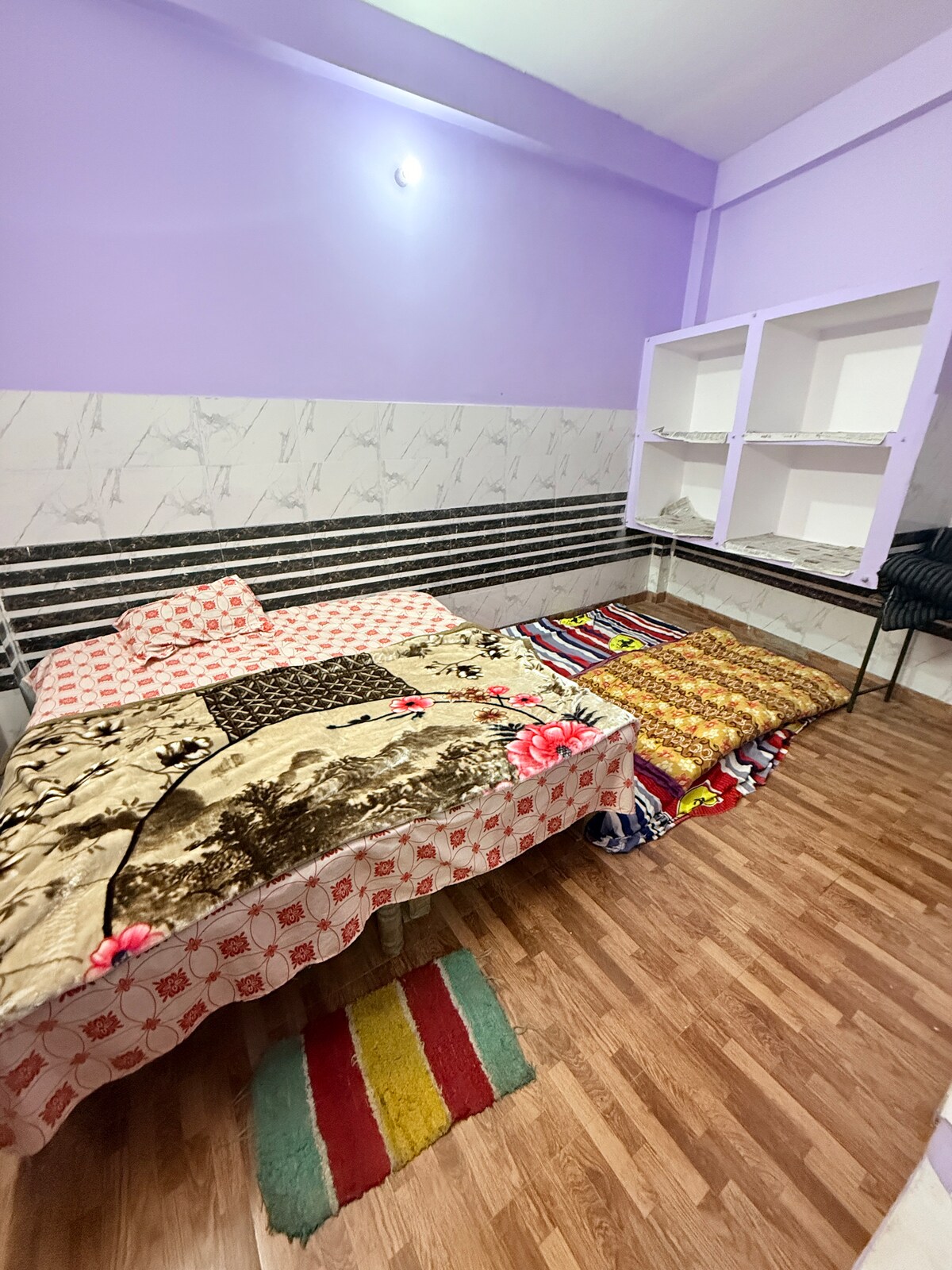 Bienvenue dans notre somptueuse maison familiale à Prayagraj. Vous serez entouré par le confort d'une vraie maison familiale indienne avec chambres meublées. Il y a trois chambres spacieuses, un salon,un grand hall avec télévision, et une salle de bain avec commode et une salle de bain de style indien. Deux parkings de roues sont disponibles et quatre-roues peuvent être garés à l'extérieur sur la route. Vous pouvez profiter de votre thé du soir dans notre jardin. Il peut accueillir 6 adultes et enfants. Nous suivons strictement les heures d'arrivée et de départ