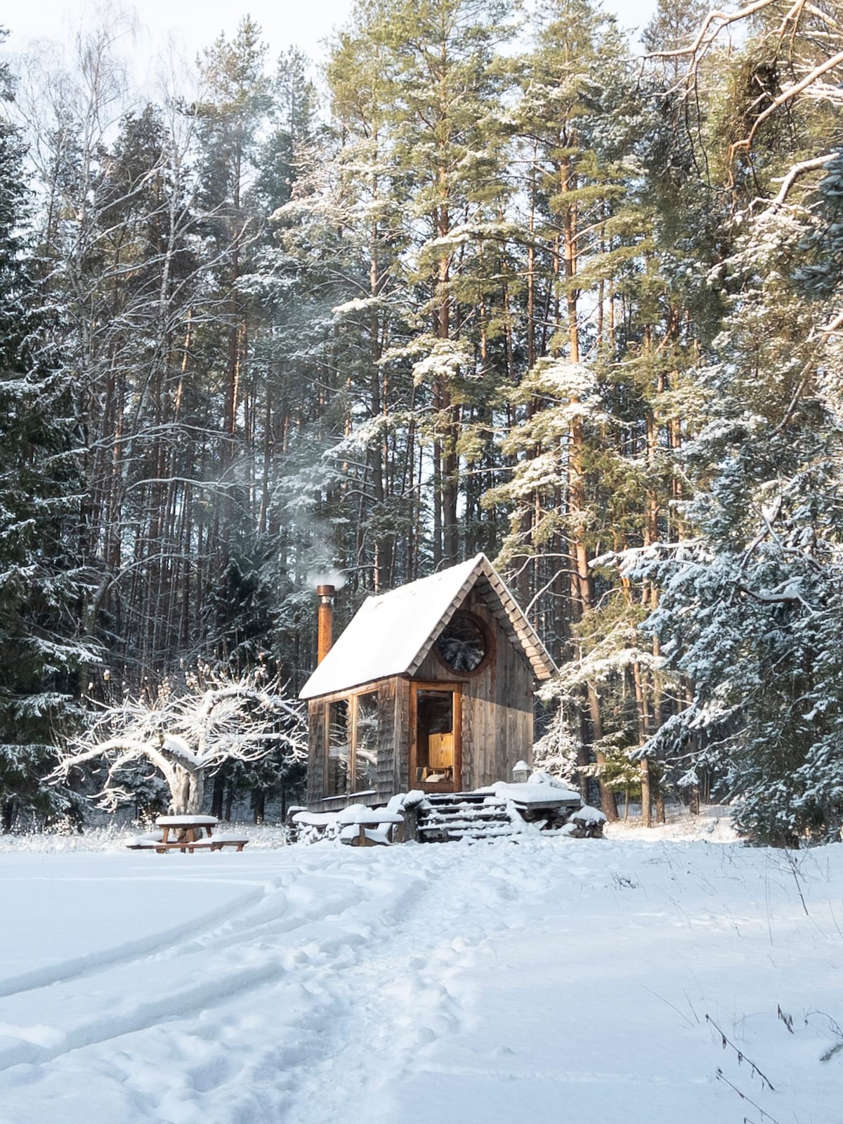 Un camping entouré de forêt avec deux étangs alimentés par des sources, des chalets confortables avec poêles, un sauna et un jacuzzi à ciel ouvert. Il n'y a pas d'électricité, seulement la paix, la nature et le calme. Le site offre une cuisinière à gaz, un foyer, un pot kazan et des espaces de couchage confortables. Une expérience d'apiculture en option comprend des souvenirs de miel local. Une retraite parfaite pour ceux qui recherchent une évasion naturelle de la routine quotidienne et du bruit de la ville. Les réservations de sauna et de jacuzzi sont effectuées séparément.