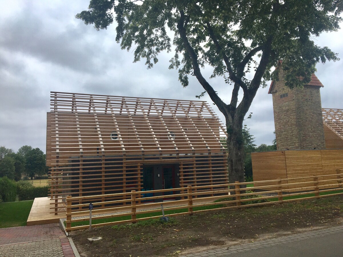 Repos, sauna, promenades en forêt, lacs et détente ! Nous louons notre terrain naturel près de Rheinsberg - à seulement 100 km de Berlin. Il y a deux maisons confortables (6 et 4 lits) qui peuvent être louées individuellement ou ensemble par des familles ou des amis. La propriété est située au calme au bord d'un petit village. Il est entouré de forêts denses et de 7 lacs à proximité. Il y a des poules, des œufs frais, le calme, un sauna en bois avec des seaux et une vue magnifique sur la forêt d'aulnes.