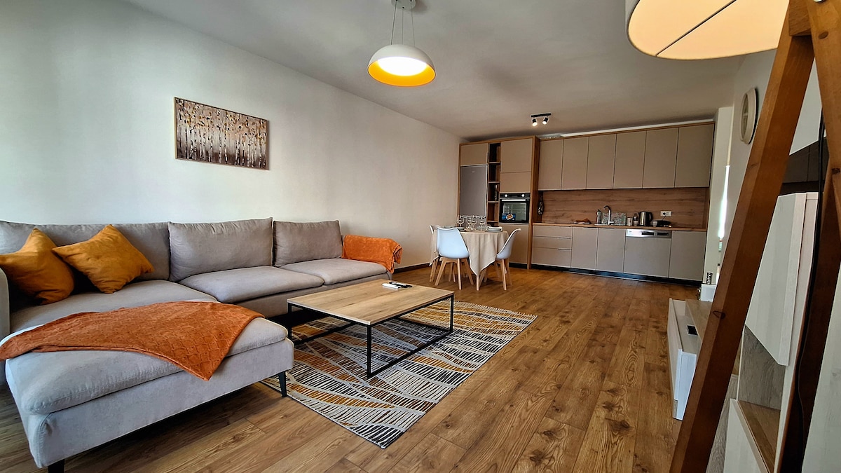 Profitez d'un logement élégant et central à Abi Platinum, à 17 minutes à pied (7 minutes en voiture) de la place Shadërvan et à 9 minutes à pied (5 minutes en voiture) de la gare routière. Couchage 4 : lit king size, canapé dans le salon et un autre dans une salle de lecture calme. Deux salles de bain complètes, cuisine entièrement équipée, grand balcon avec vue sur la montagne, Wi-Fi rapide, télévision connectée, ascenseur et parking sécurisé sur place. Parfait pour les escapades en ville, les séjours Dokufest ou le travail à distance : confort, commodité et style au cœur de Prizren.