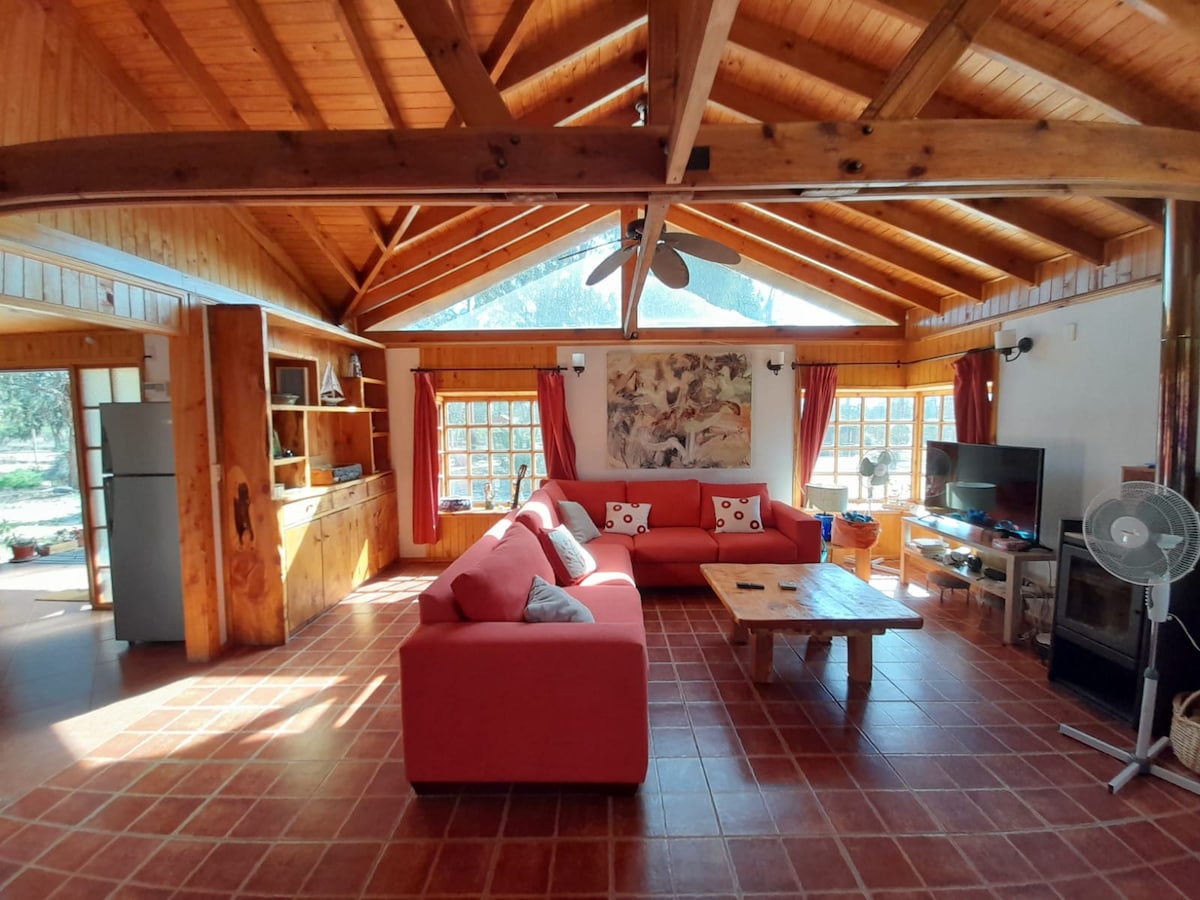 Confort, liberté et intimité est ce que cette maison offre, entourée d'arbres fruitiers dans un vaste espace vert pour libérer vos animaux de compagnie, où il y a aussi un quincho rustique idéal à partager avec qui vous voulez, une piscine pour les jours de chaleur et une cheminée pour ces jours pluvieux, faits maison et déconnectés de tout. La maison et le terrain sont exclusifs pour les clients de sorte qu'ils n'auront pas à partager l'espace avec qui que ce soit.
