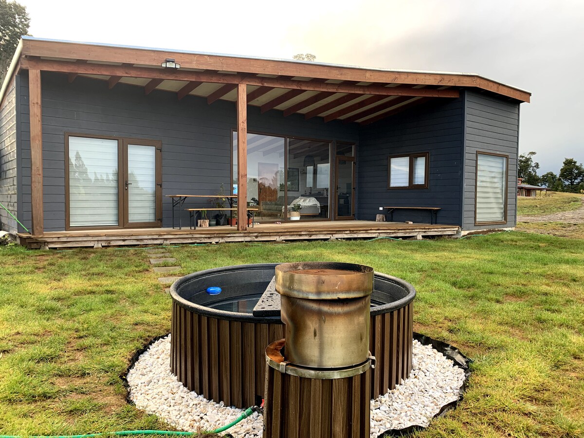 Déconnectez-vous de la routine dans cet hébergement unique et relaxant que nous avons créé avec amour pour vous accueillir dans la belle Patagonie chilienne. Vous trouverez ici des espaces conçus avec la meilleure qualité et le meilleur confort où vous pourrez profiter d'une vue captivante sur le lac, les volcans, les montagnes et la campagne. Dans le jardin, nous avons des pergolas avec jacuzzi (baignoires) avec vue sur le lac. Ils doivent être réservés au moins 24 heures à l'avance. Son utilisation est à un coût supplémentaire et sous réserve de disponibilité