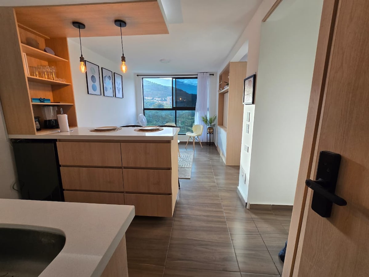 Cet appartement de 2 chambres offre un espace confortable et élégant, parfait pour les voyageurs d'affaires, les couples ou les petites familles, avec une capacité allant jusqu'à 4 personnes. Il dispose de la climatisation dans les chambres et le salon, des chambres avec télévision, d'une cuisine équipée avec appareils électroménagers et ustensiles de cuisine. Emplacement en face du centre commercial country plaza, où vous trouverez des services de coiffure, un supermarché, des restaurants, etc. à 5 minutes de Jamundi et à 10 minutes du sud de Cali