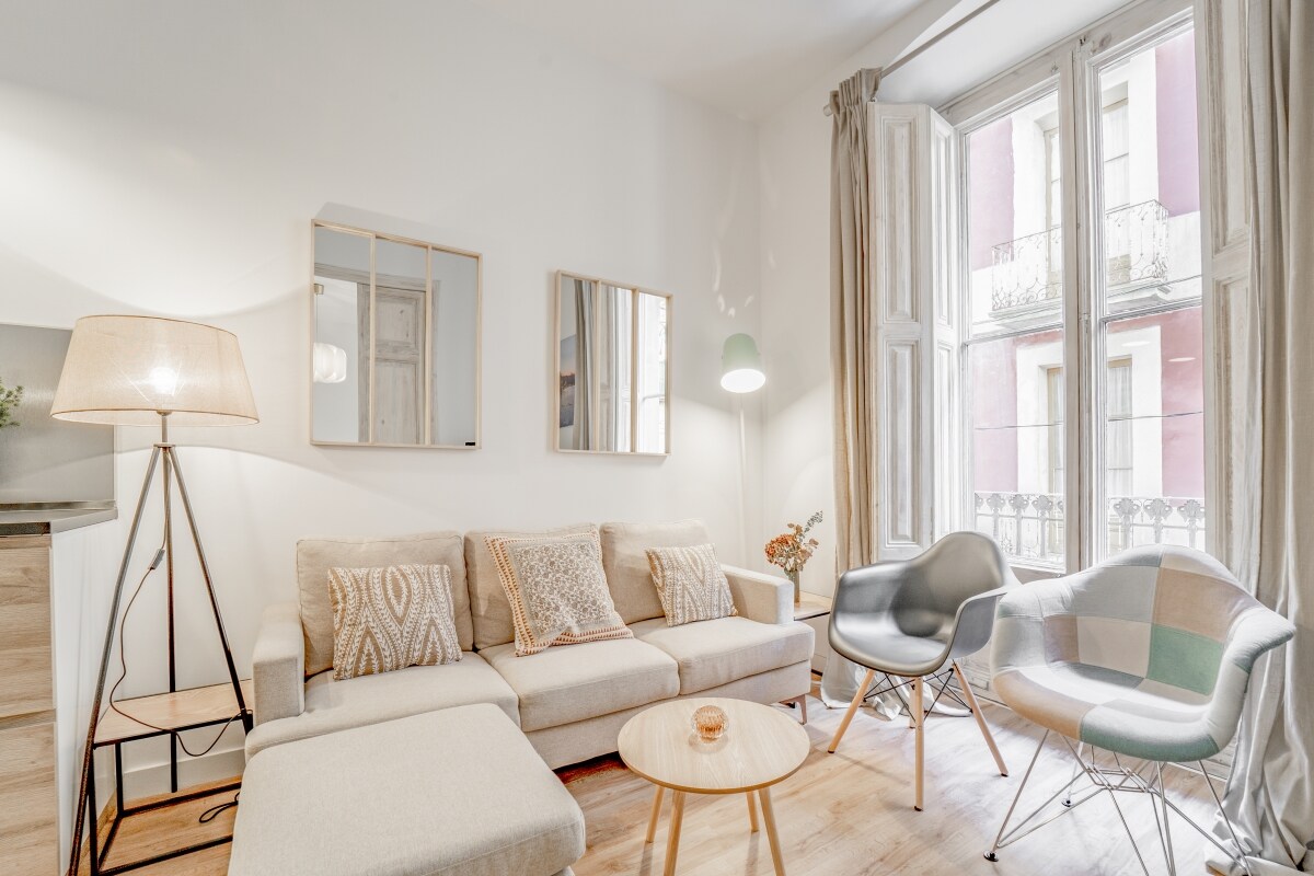Bel espace entièrement rénové à neuf avec toutes sortes de détails. Il dispose de 2 chambres, salle de bain complète, cuisine équipée avec tout ce dont vous avez besoin (comprend une machine à café Nespresso, un grille-pain, etc. à l'exception du four qui n'est pas disponible pour votre usage). Lave-linge, sèche-linge, micro-ondes, Smart TV, Wifi, et place de parking assignée au sous-sol de l'immeuble (place de parking pour une voiture de taille moyenne/petite).