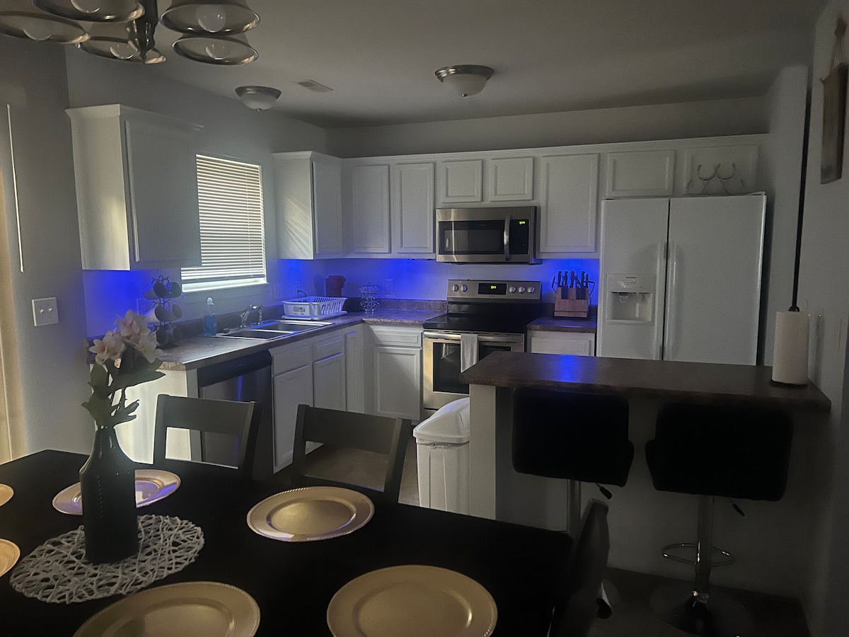 Venez vous détendre dans cette belle maison moderne de plain-pied située dans un quartier résidentiel tranquille. Idéalement situé à proximité des magasins, des restaurants et à 7 minutes du centre d'accueil de Fort Lenard Wood. La maison dispose de 3 chambres avec une belle suite parentale, 2 salles de bain complètes, un salon principal ouvert, une cuisine entièrement équipée, une connexion Wi-Fi haut débit et des téléviseurs intelligents pour regarder toutes vos émissions de streaming préférées. Parfait pour les événements de formation de base et les écoles.