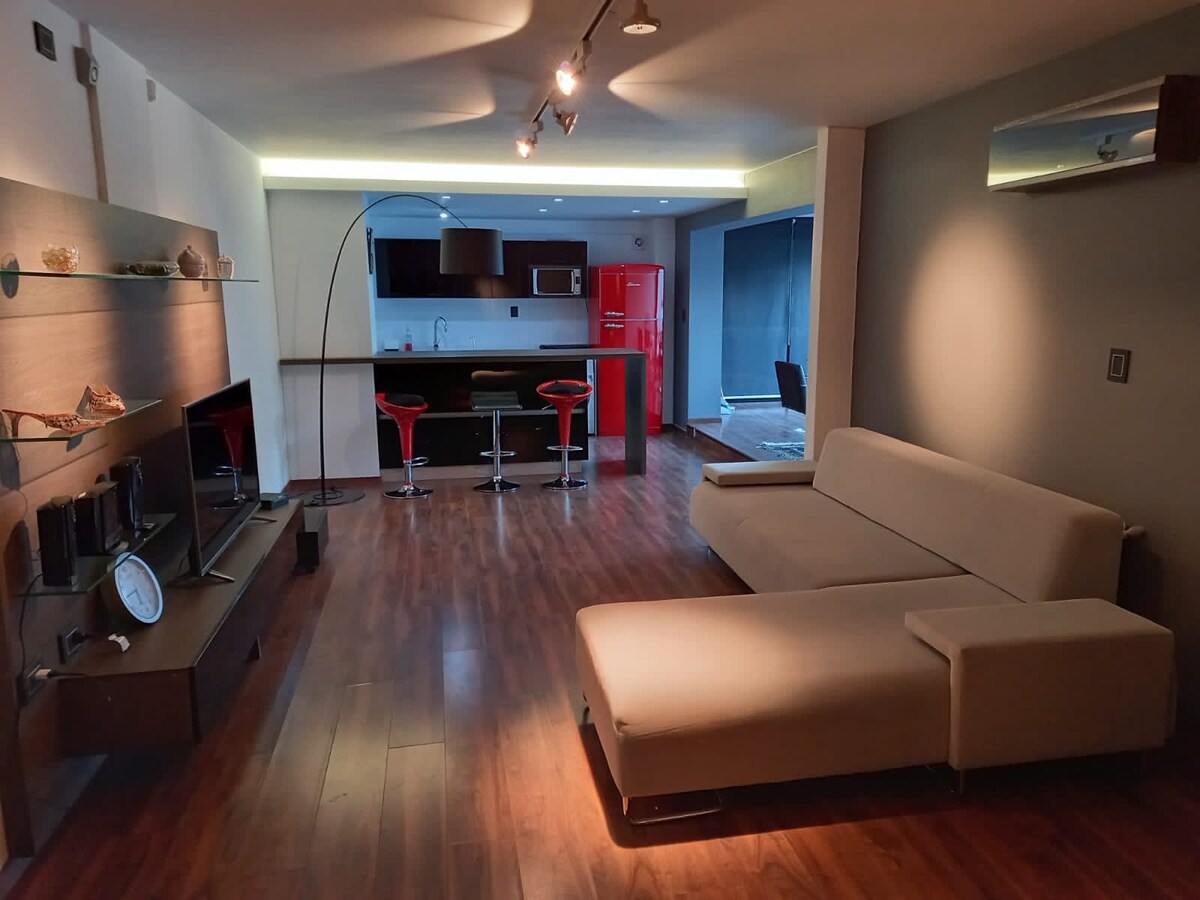 L'appartement d'une chambre est neuf et est en plein centre ville de La Falda, et offre en même temps un environnement calme qui vous permet de profiter d'une vue spectaculaire sur les montagnes. À quelques pas, vous trouverez une variété de commerces, bars, restaurants, supermarchés, guichets automatiques et points d'intérêt touristique. Nos clients sont notre priorité, de sorte que tout l'équipement de l'appartement est complet et de première qualité, pour rendre votre séjour exceptionnel.