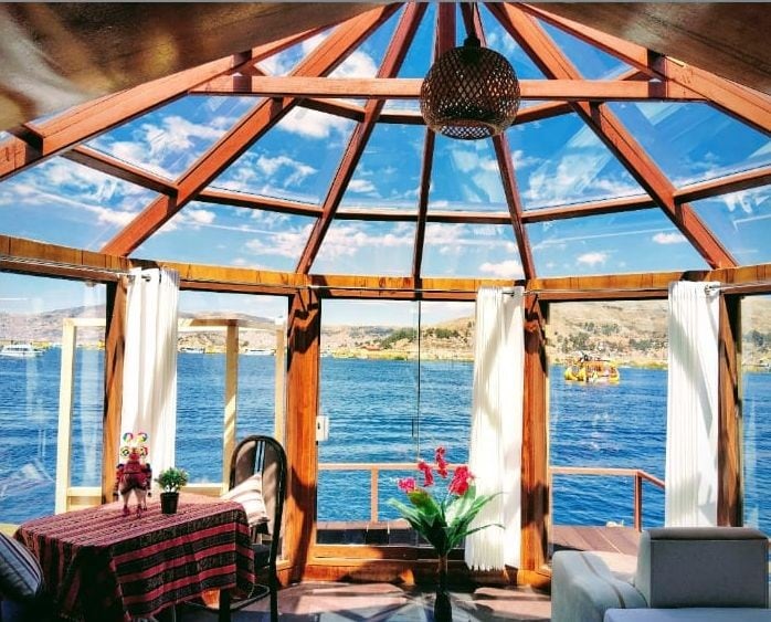 Uros Suma Inti Alpina Lodge est au cœur du lac Titicaca. Nous sommes une famille qui veut partager des expériences uniques et authentiques, et en même temps voir les constellations d'étoiles. Découvrez nos coutumes et promenez-vous avec nous lors d'une visite autour des îles flottantes des Uros moyennant un coût supplémentaire. Le petit déjeuner est inclus. et nous faisons également le transfert de notre propre bateau du port de Kalapajra à notre Lodge qui est situé dans les îles des Uros avec un coût supplémentaire.