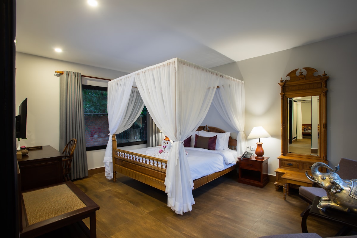 Au-delà du cœur animé de Siem Reap, un havre de paix privé vous attend. Votre escapade d'une chambre offre 1 000 m ² de sérénité luxuriante, parfaite pour les après-midis calmes sous les feuilles ensoleillées. Explorez les temples anciens le jour, savourez les délices locaux la nuit et revenez à la chaleur de votre havre de paix dans votre quartier. L'air frais, les sourires amicaux et les souvenirs intemporels, tous tissés dans le tissu de votre escapade à Siem Reap.