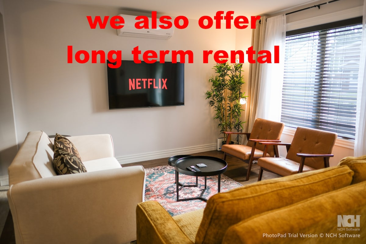 Escape to Montreal to a stylish suite! Nothing in pics here is shared with others 🔐 + Your private entrance🚪 Relax in the spacious living room on smart big-screen 📺 Sleep in a comfortable queen bed 🛏️ All nestled in basement-suite in a quiet street 💤 By car 🚙 15 min to downtown Montréal 6 min to REM Panama station and Mall Champlain 5 min to DIX30 Mall By foot🚶🏻🚶🏻♀️ 12 min Grocery Store Free street parking 🅿️ Washer/dryer included 🧺 Diverse dining 🍽️ options mins away. Book your retreat today : )