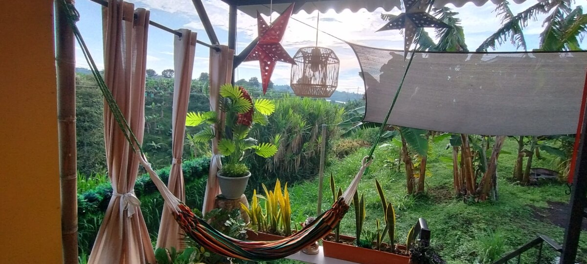 Vivez l'essence de l'Eje Cafetero dans un hébergement champêtre entouré de verdure et d'air frais. Profitez de notre piscine, de nos grands espaces et d'une atmosphère familiale conçue pour se reposer et se connecter avec la nature. Nous sommes à seulement 5 minutes du Parque del Café et très proche de Panaca. Juste à côté du logement, vous pourrez profiter du restaurant Reserva del Colibrí, avec une délicieuse cuisine, du café et une atmosphère naturelle charmante.