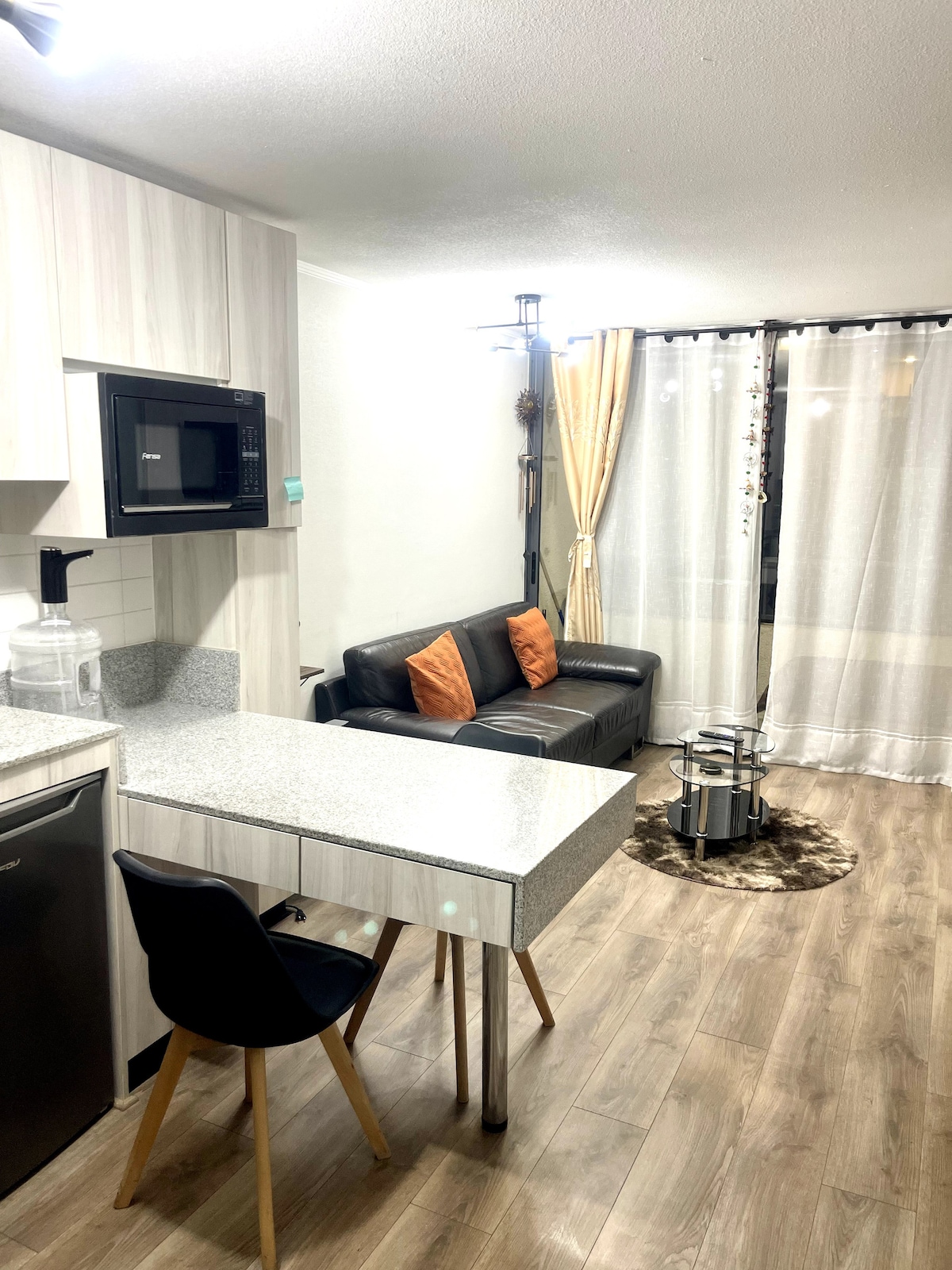 Studio confortable et calme avec cuisine équipée et climatisation, idéal pour un séjour confortable à Santiago. Situé à quelques pas du parc Quinta Normal et à proximité du métro Gruta de Lourdes et Quinta Normal, avec une excellente connectivité. Près de Matucana 100, musées, hôpital San Juan de Dios, bibliothèque de Santiago, commerces et autoroute centrale. À seulement 20 minutes de l'aéroport. Le bâtiment dispose d'une place surélevée avec vue sur le parc et la basilique de Lourdes. Un parking est à disposition.