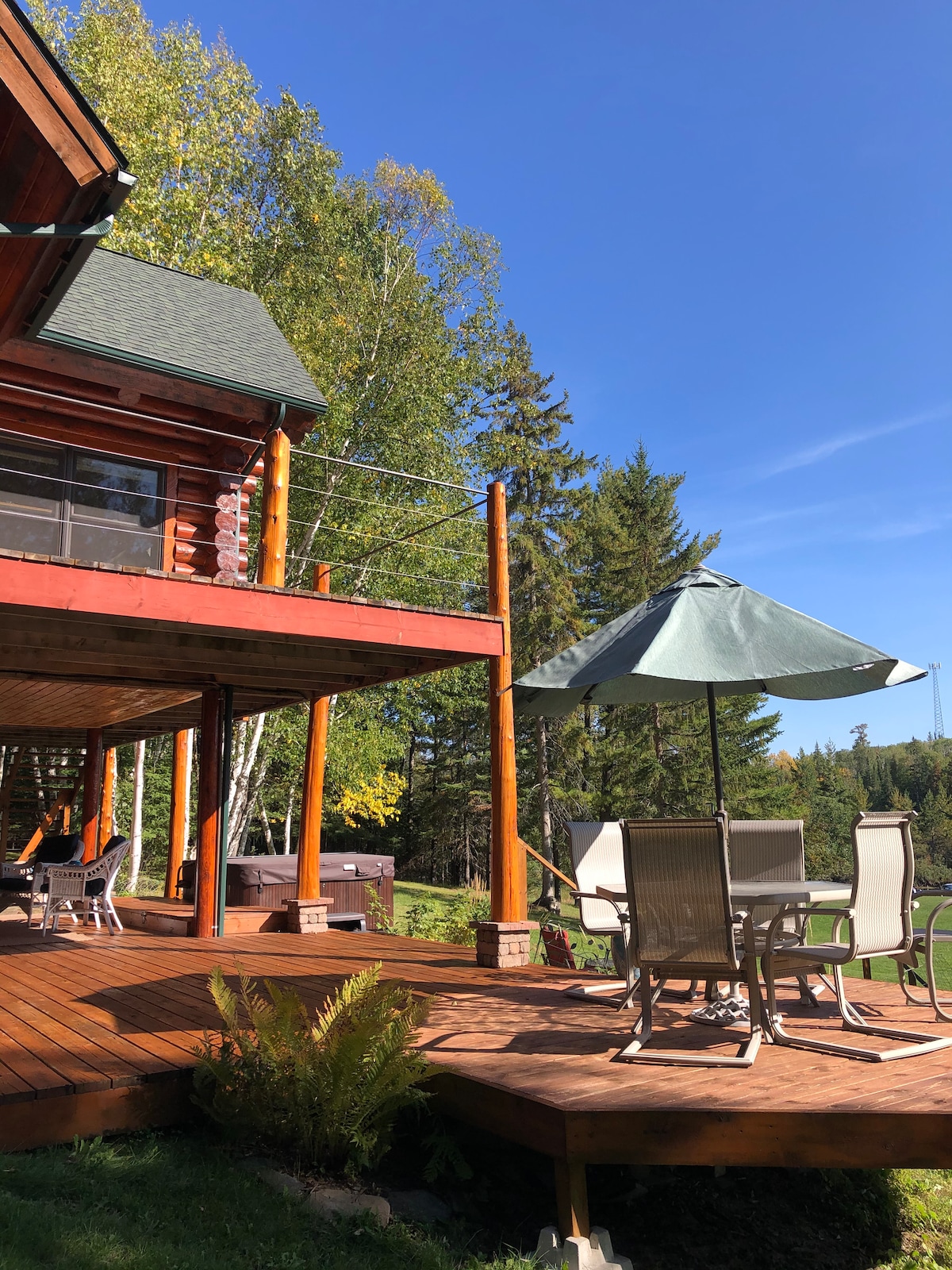 Détendez-vous en famille dans ce chalet paisible à Ely. Passez du temps sur la terrasse, en admirant la vue magnifique sur Shagawa. Asseyez-vous sur le quai en regardant les étoiles, ou sautez pour un plongeon rapide ! Profitez du plein air en séjournant dans cette magnifique cabane, isolée des autres mais proche de la ville. C'est le paradis ! La cabane dispose de tout le luxe de la ville, mais dans une belle zone boisée. Détendez-vous, vous le méritez ! Deux animaux de compagnie acceptés La personne qui réserve doit avoir plus de 25 ans