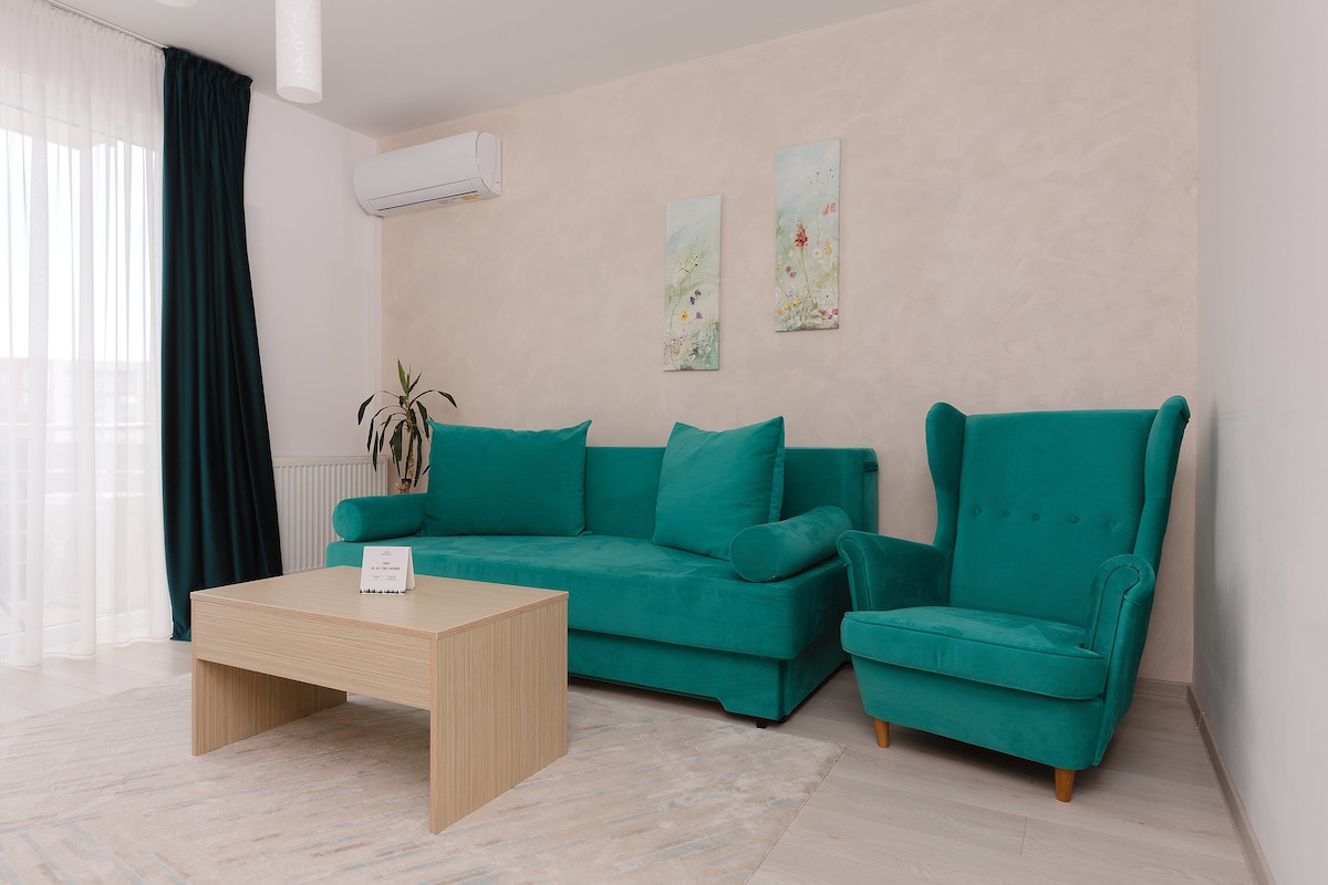 Bellview Apartment fait partie du portefeuille Brasov Holiday Apartments, situé dans le quartier résidentiel d'Avantgarden Bartolomeu. Cet appartement de 80 m² comprend trois pièces : deux chambres, un salon et une cuisine entièrement équipée. Elle dispose également d'une salle de bain privée avec baignoire, d'une salle de bain de service et d'articles de toilette gratuits, ainsi que de deux balcons.