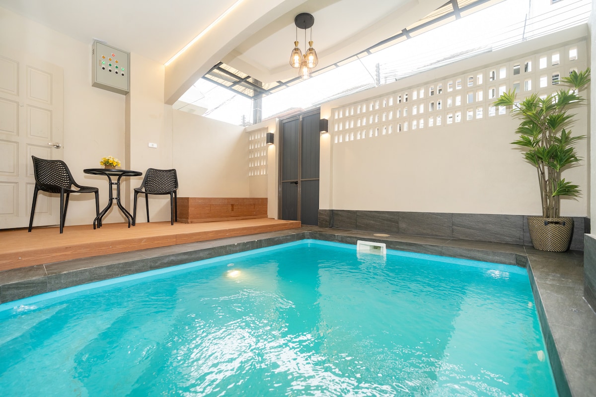 En face de la route 402 de la marina de Boat Lagoon, cette maison est située en plein cœur d'un quartier thaïlandais de la classe ouvrière. De nombreux restaurants familiaux au sein de la communauté proposent une cuisine locale. Emplacement idéal si vous prévoyez une excursion d'une journée aux îles Phi Phi. La jetée est à 5 minutes de la maison. Piscine privée ouverte 24 h/24 pour se rafraîchir pendant les chaudes journées d'hiver. À 9 minutes du centre commercial Central Festival. À 25 minutes de la plage de Patong.
