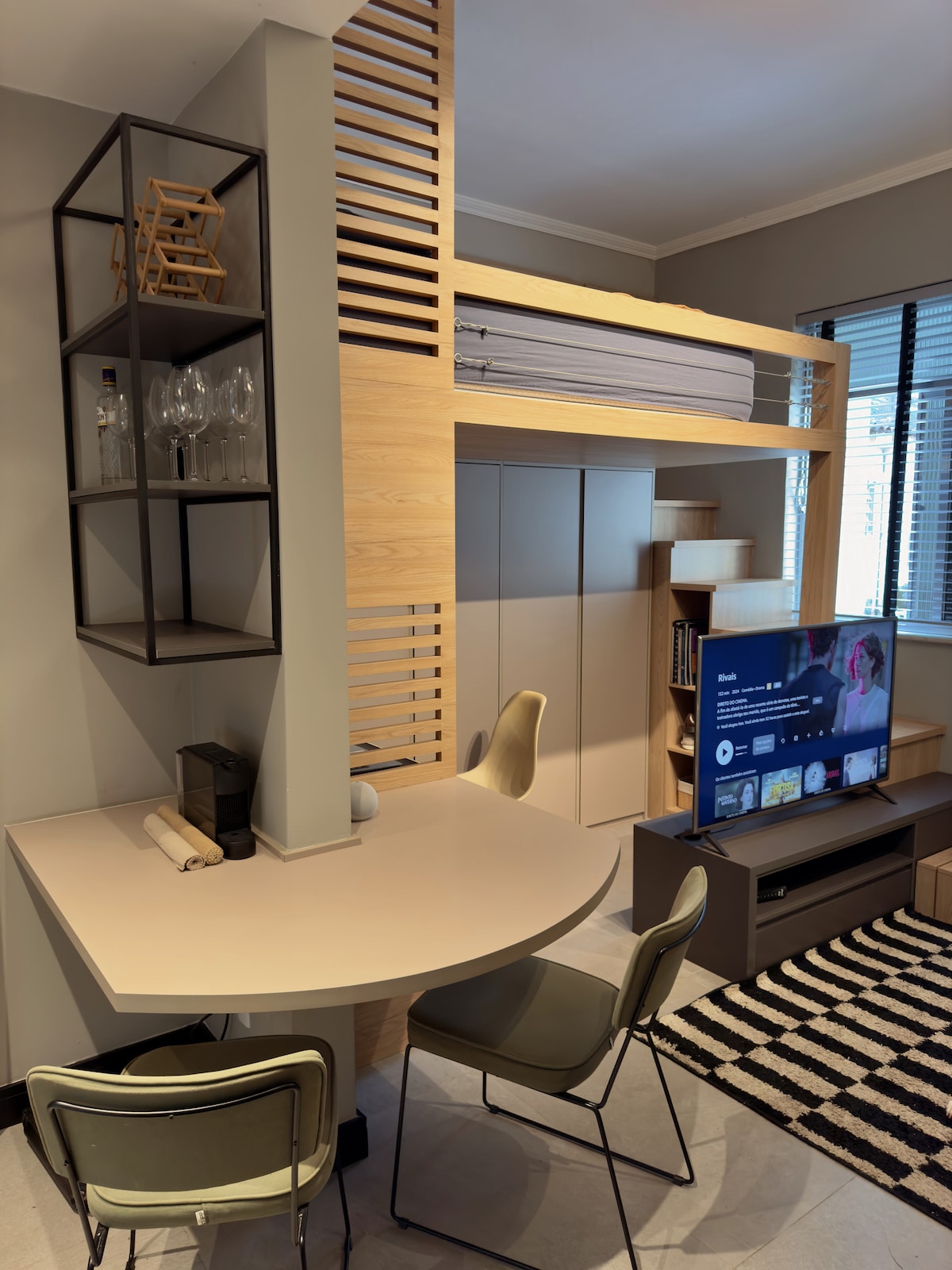 Espace entier. L'appartement est spacieux, confortable, organisé, aéré et bien éclairé, avec le soleil du matin. Dans la chambre, il y a un nouveau lit double et un placard. Le salon est grand pièce avec table à manger, canapé-lit (double) et balcon avec des plantes et un hamac. La cuisine est complète avec tous les ustensiles. La salle de bain est rénovée avec douche 220v. L'espace dispose de la climatisation. De plus, la chambre dispose d'un ventilateur de plafond et, dans le salon, d'un ventilateur de sol portable.