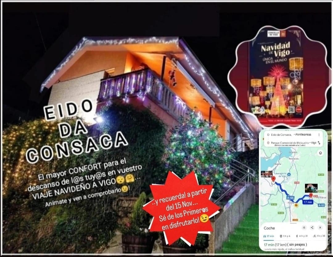 Garantie par société @MICASADEVACATIONES Ce logement unique a sa propre personnalité. Propriété exclusive dans un cadre splendide, idéal pour les familles , où vous pourrez vous évader de la routine et profiter de la tranquillité et du repos. Tout cela dans un emplacement avec d'excellentes connexions et très proche de la zone du Val Miñor. Plages merveilleuses, gastronomie, nombreuses activités, paysages de rêve et bien d'autres secrets, sont ce que cette région offre pour le plaisir de ses visiteurs