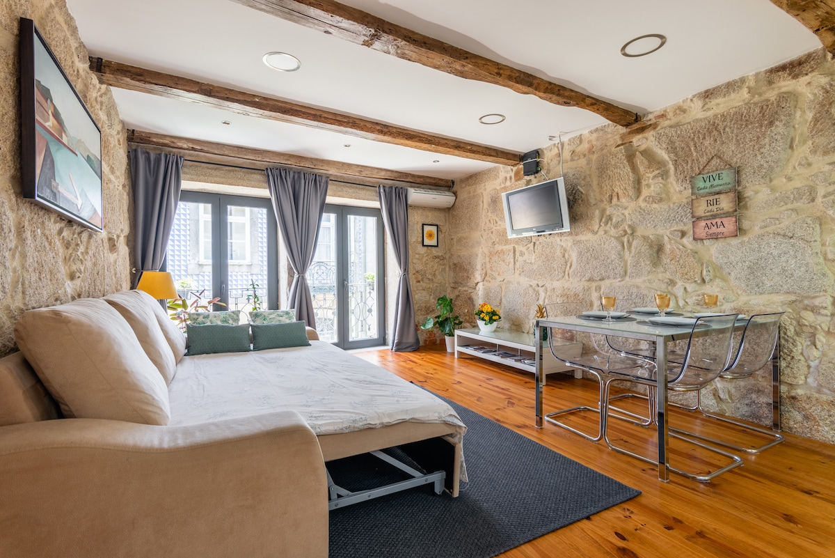 Profitez du privilège de séjourner dans un bâtiment historique, vieux de plusieurs centaines d'années et entièrement rénové ! Avec seulement trois appartements, ce charmant petit immeuble est parfaitement situé dans la Rua das Flores, l'une des rues les plus appréciées de Porto, entre la gare de São Bento et Ribeira, dans le centre historique - patrimoine mondial de l'UNESCO. Ce studio élégant et luxueux a été soigneusement conçu pour vous offrir le séjour le plus confortable, avec un joli balcon, parfait pour profiter de l'atmosphère enchanteresse de Porto !